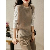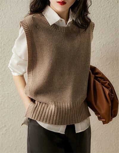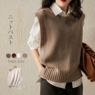 ニットベスト レディース 秋冬 ニット サイドスリット ベスト トップス ショート丈 キレイめ ベスト オフィス 通勤 レイヤード 重ね着 ベーシック 大人可愛い ノースリーブ カジュアル 可愛い ゆ