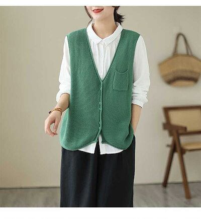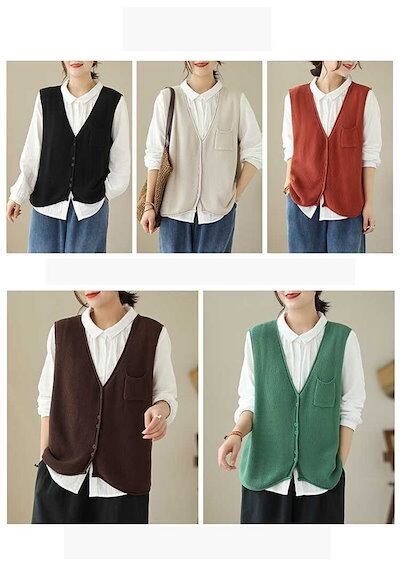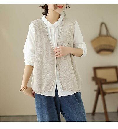ニットベスト レディース ノースリーブ ニット ベスト トップス 前開き ジャケット カーディガン ゆったり おしゃれ お洒落 Vネック 暖かい 薄手 トップス 大人 可愛い 通勤 きれいめ ベージュ