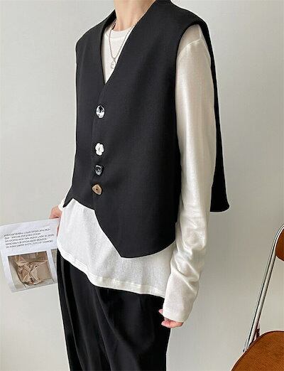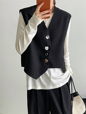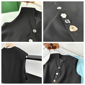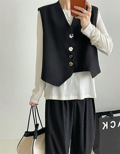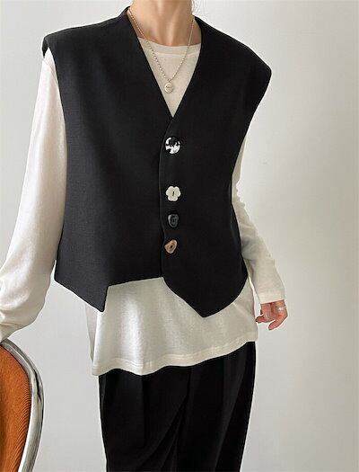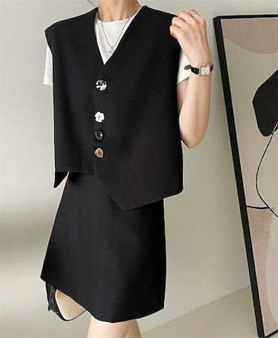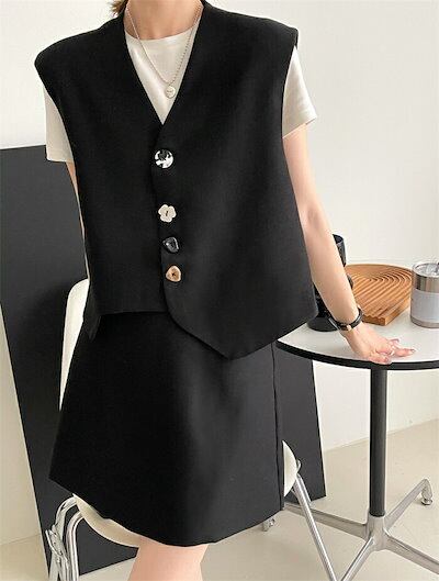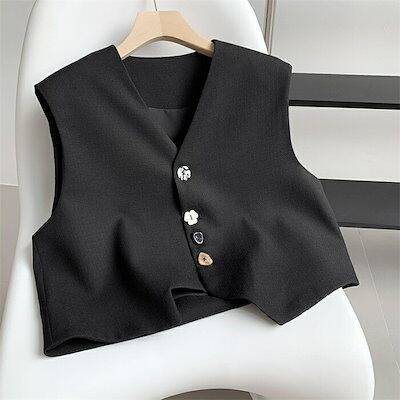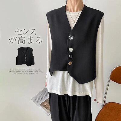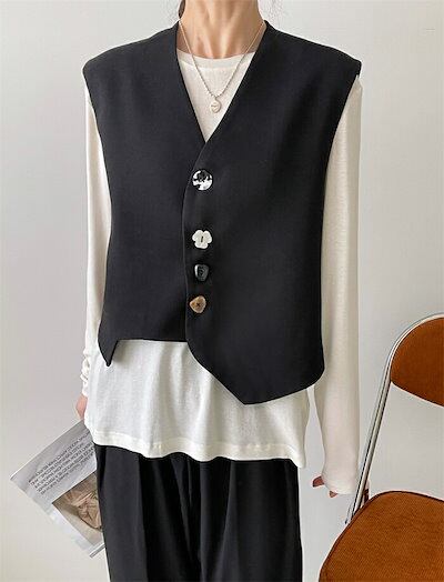 ジレ レディース ショート ジレ ベスト 無地 前開き vネック トレンチベスト ノースリーブ フォーマル スーツインナー 通勤 オフィス デザイン ボタン アシンメトリー おしゃれ カジュアル シン