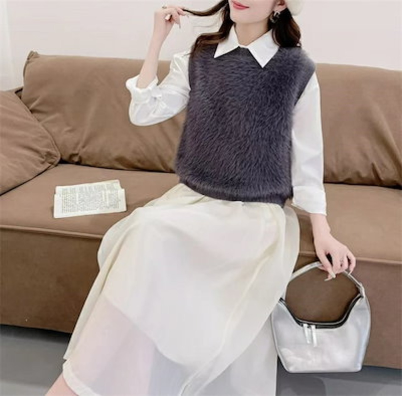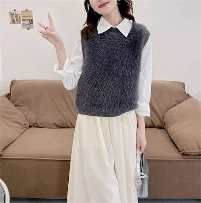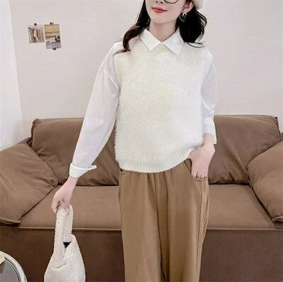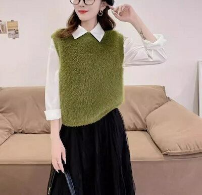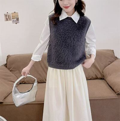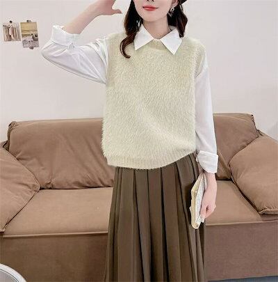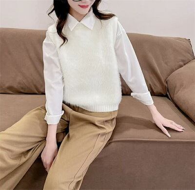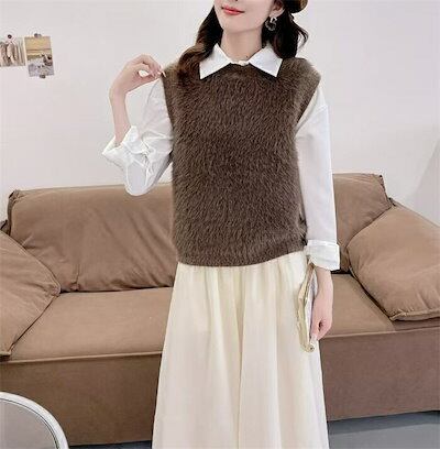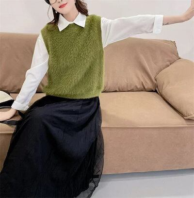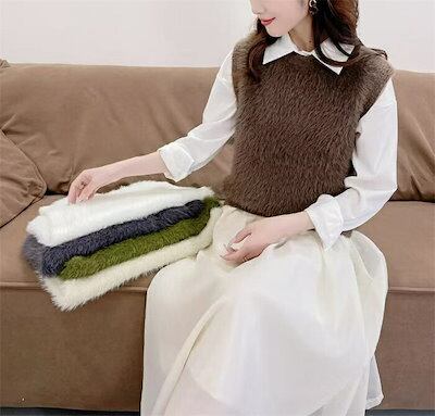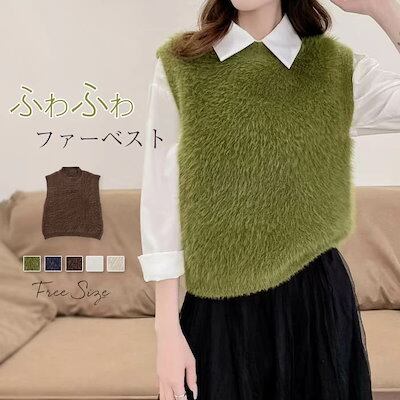 ベスト ファーベスト レディース 秋 冬 プルオーバー ベスト トップス ふわふわ ショート丈 ノースリーブ クルーネックベスト 無地 シンプル レイヤード 重ね着 もこもこ 大きいサイズ カジュアル
