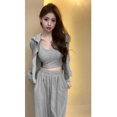 セットアップ 2024新作スリーピースレディースカジュアルフード付きジャケットファッションスーツ
