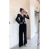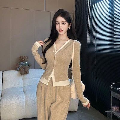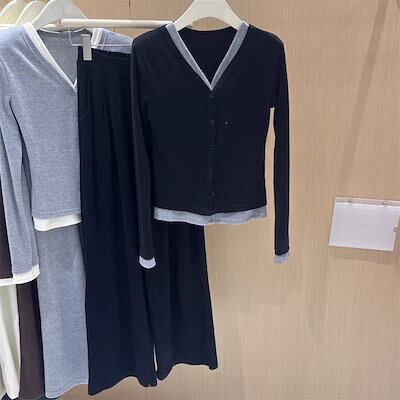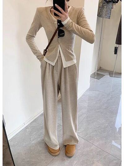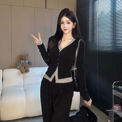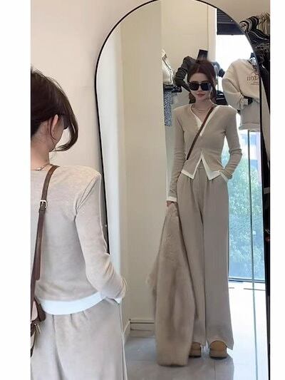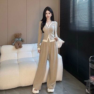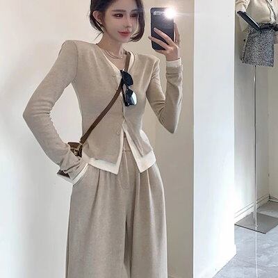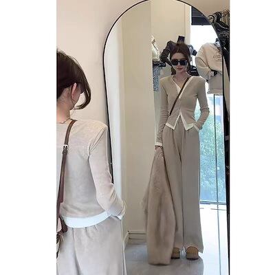 セットアップ ファッションスポーツとレジャースーツ女性秋の新しい緩い偽のツーピース長袖トップスワイドパンツツーピースセット