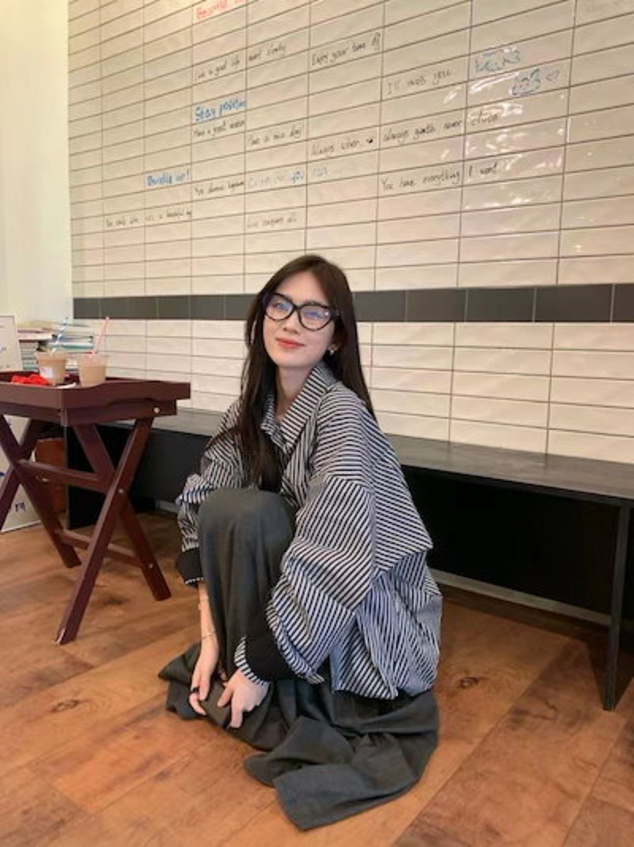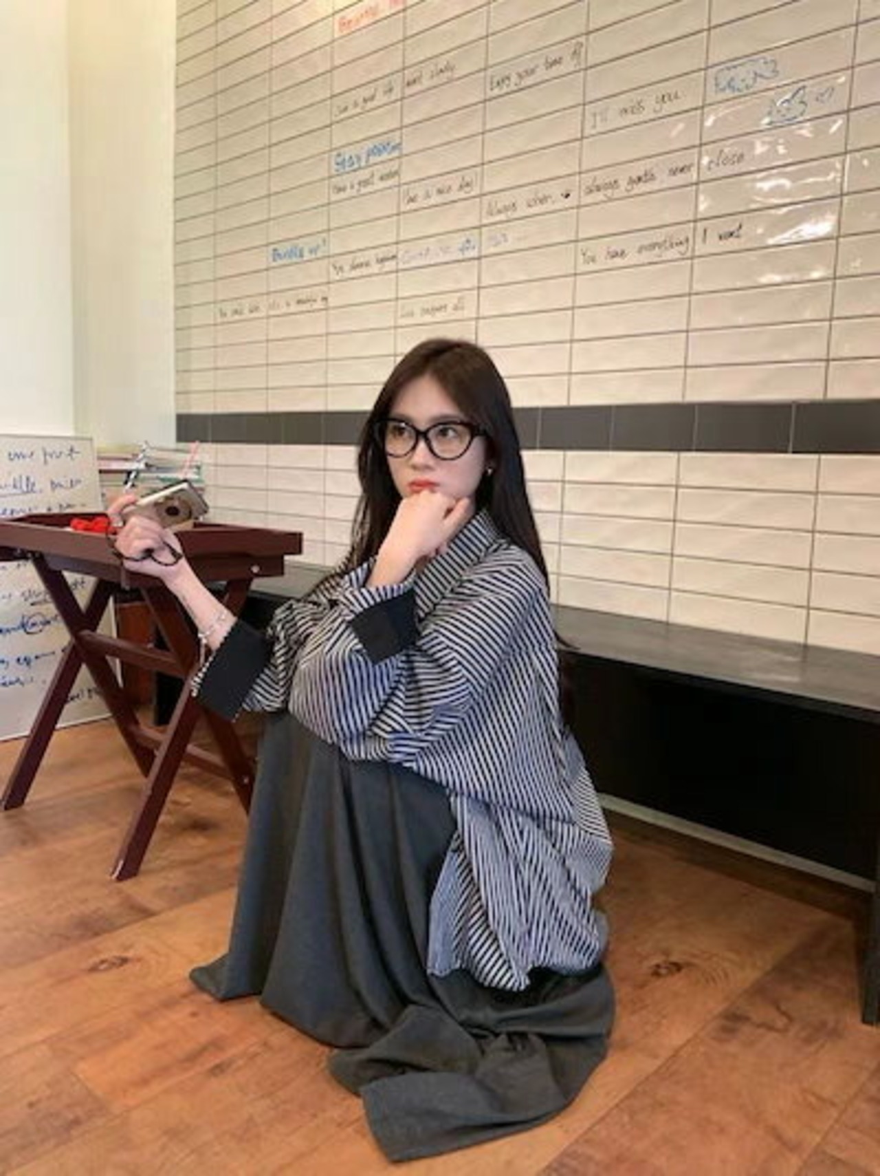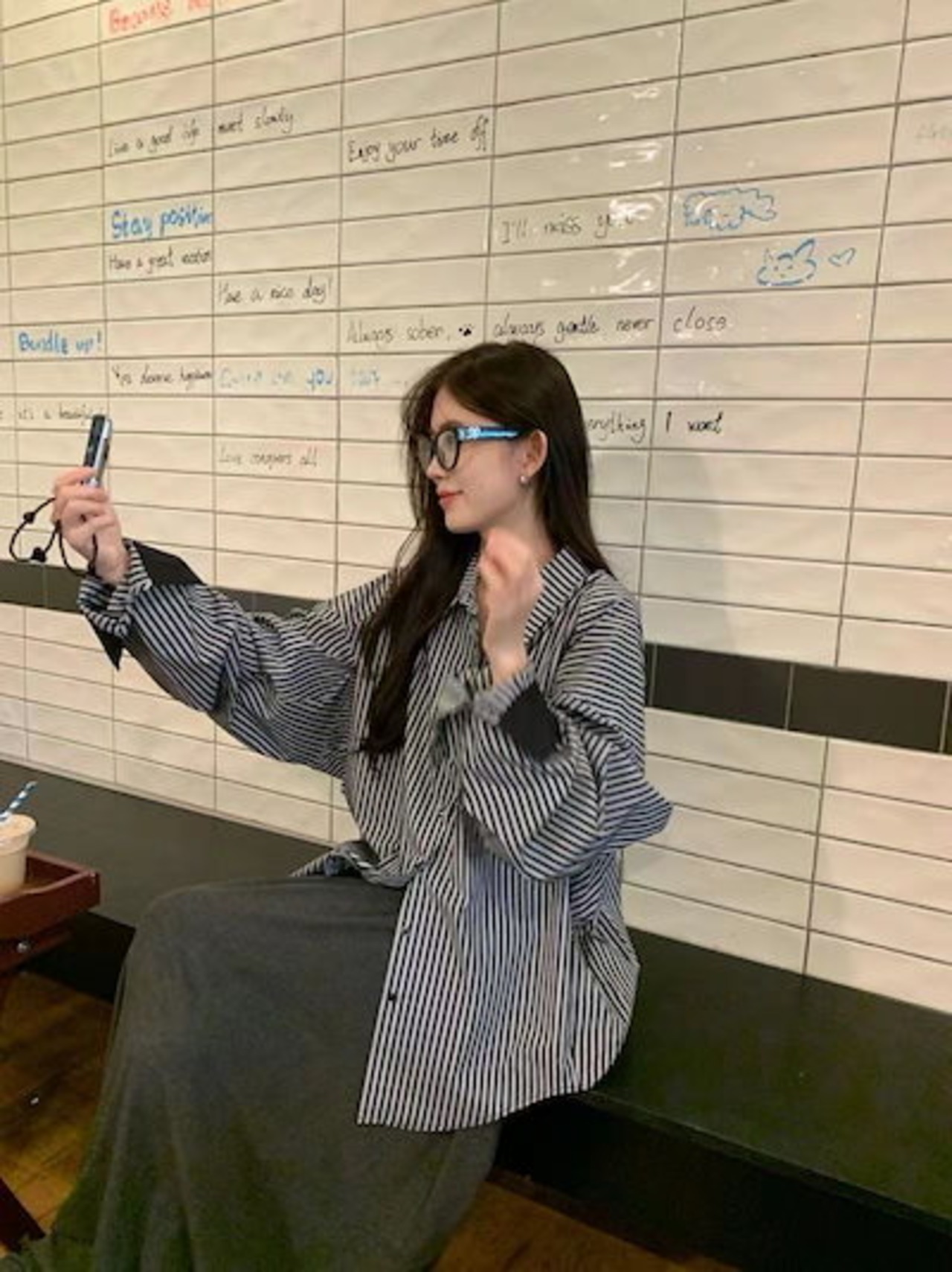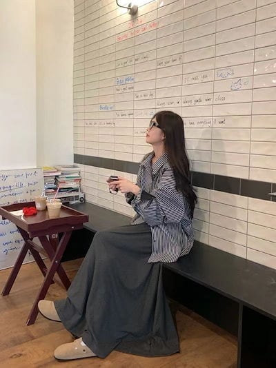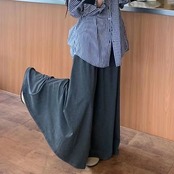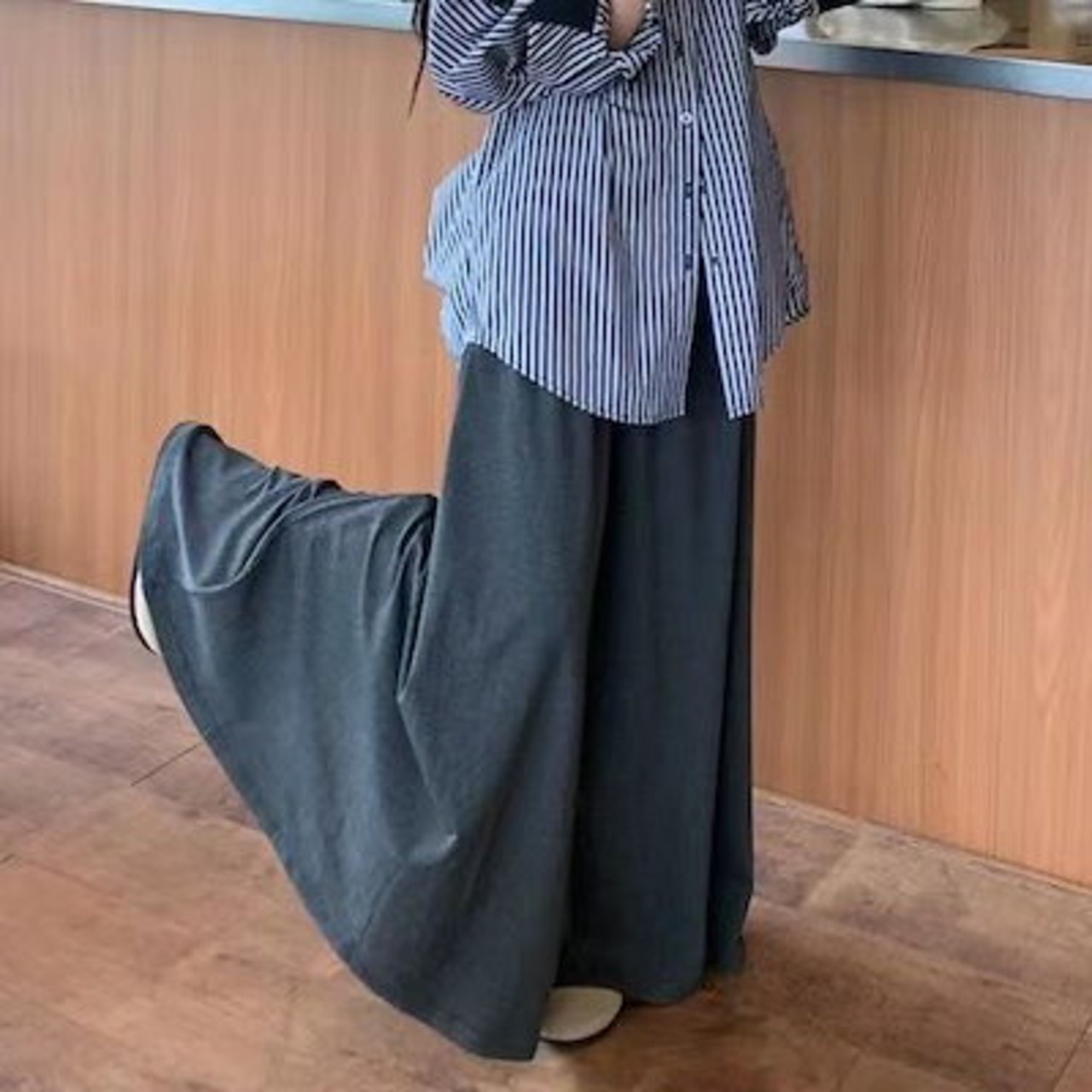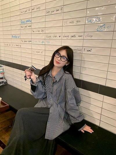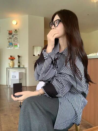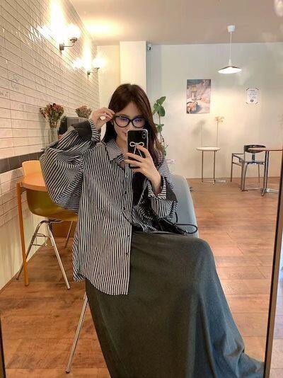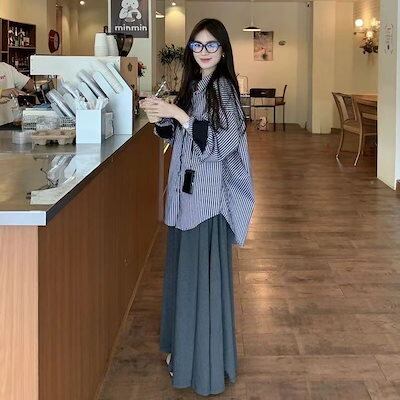 セットアップカジュアルスーツ レディース 2024年秋新作 長袖ストライプシャツ プリーツドレープロングスカート 2点セット