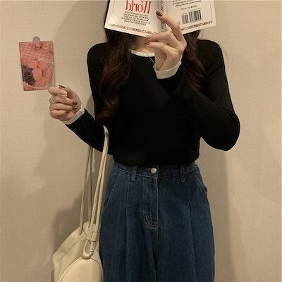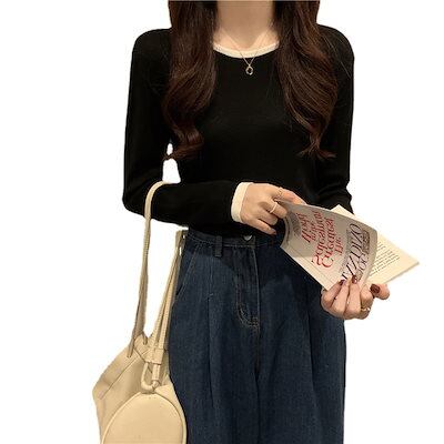 ロンT ボトムス Tシャツ 女性 秋 新作 長袖 スリム ラウンドネック 薄手 長袖 トップス