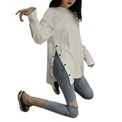 ロンT ミディアムレングス大きいサイズ無地長袖Tシャツ女性秋ルーズオープンボトムシャツ長袖トップス