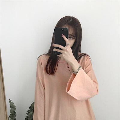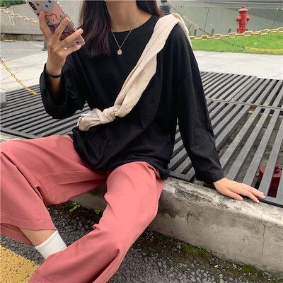 ロンT 2024新しい秋の女性のトップス長袖Tシャツ女性ラウンドネックボトムシャツ