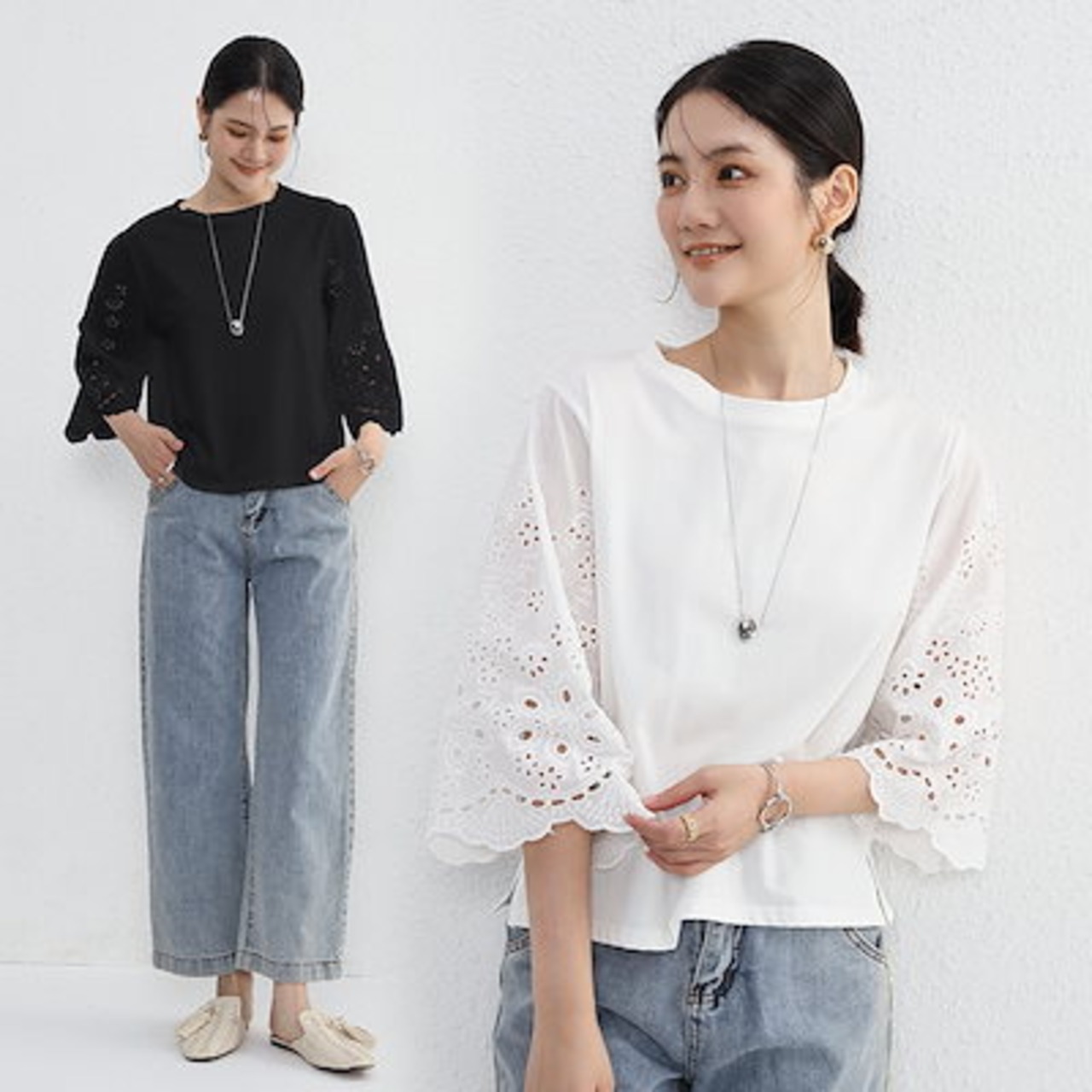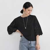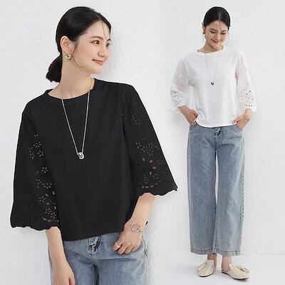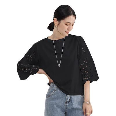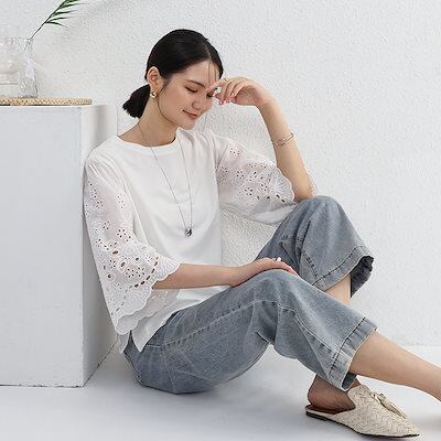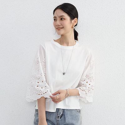 ロンT 新作 かぎ針編み レース スプライシング Tスリーブ ラウンドネック トップス フレアスリーブ デザイン ロングスリーブ トップス