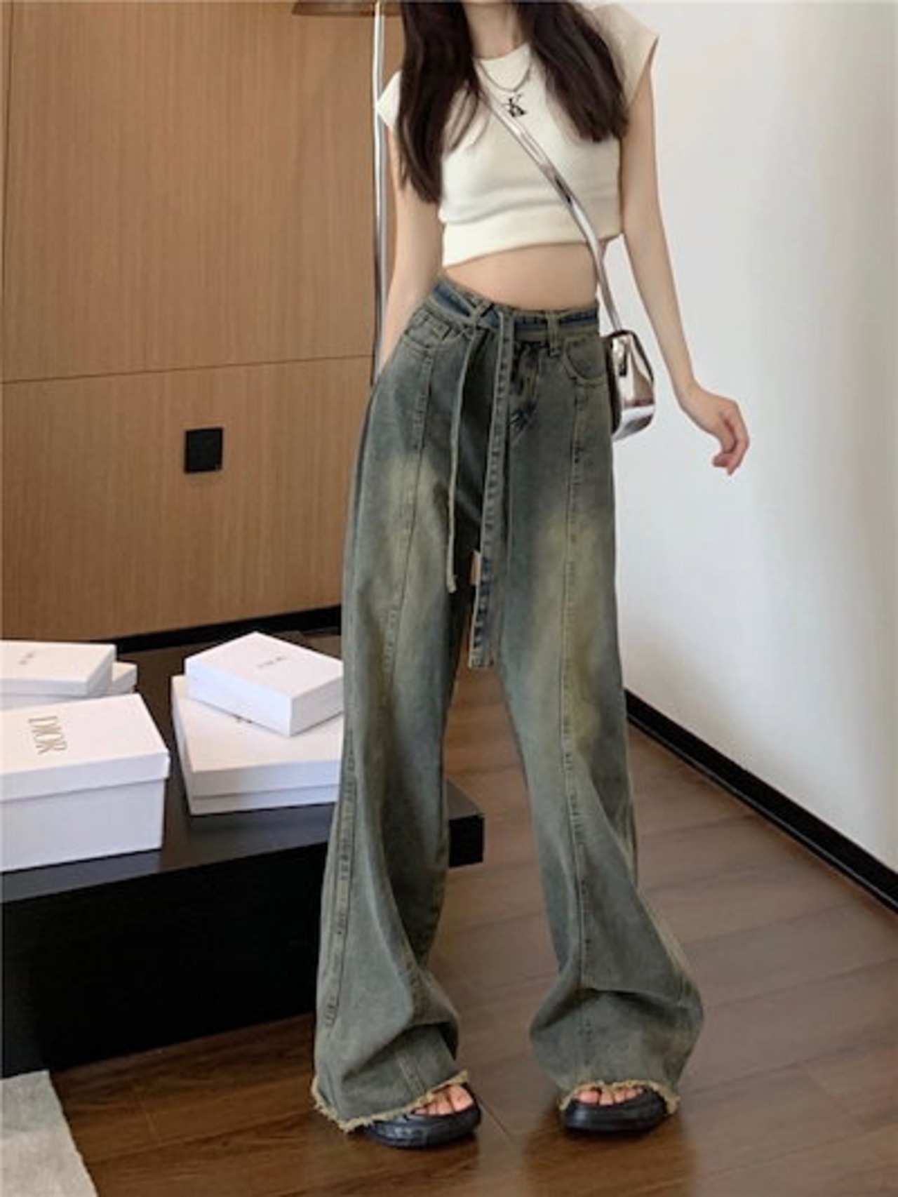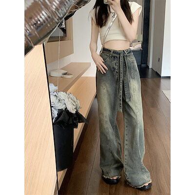 デニムパンツ ジーンズ レディース 2024新作 ハイウエストルーズ生エッジパンツ デニムワイドパンツ