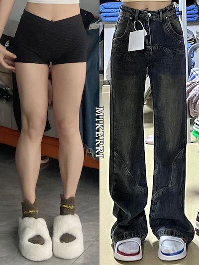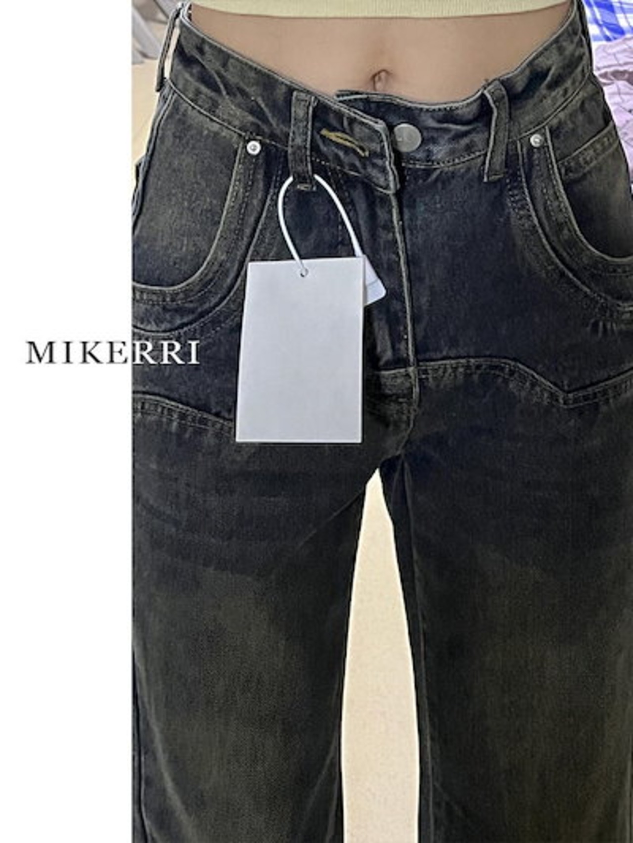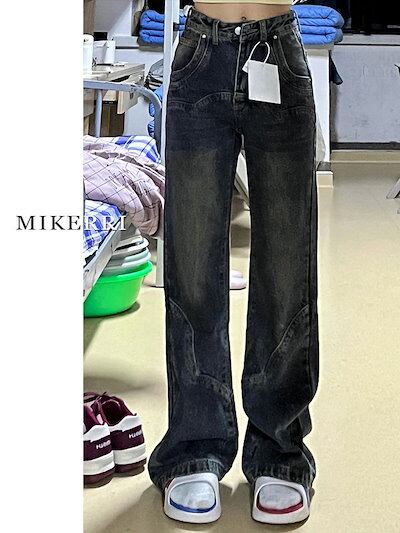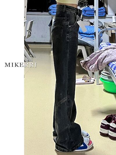 デニムパンツ マイクロフレアージーンズ 女性 大きいサイズ ハイウエスト ゆったり ワイドパンツ