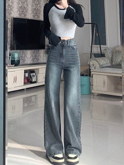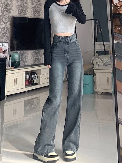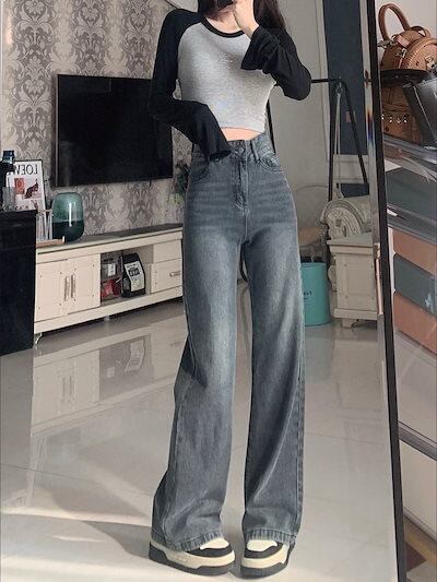 デニムパンツ レディース 2024 新作 ドレープ ワイド レッグ ドゥ オールド ルーズ デニム パンツ