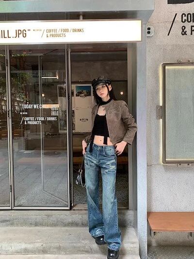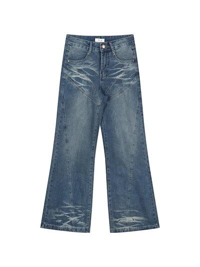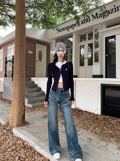 デニムパンツ女性ハイウエストマイクロフレアパンツストレートルーズワイドレッグトレーリングパンツ