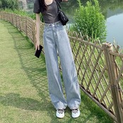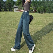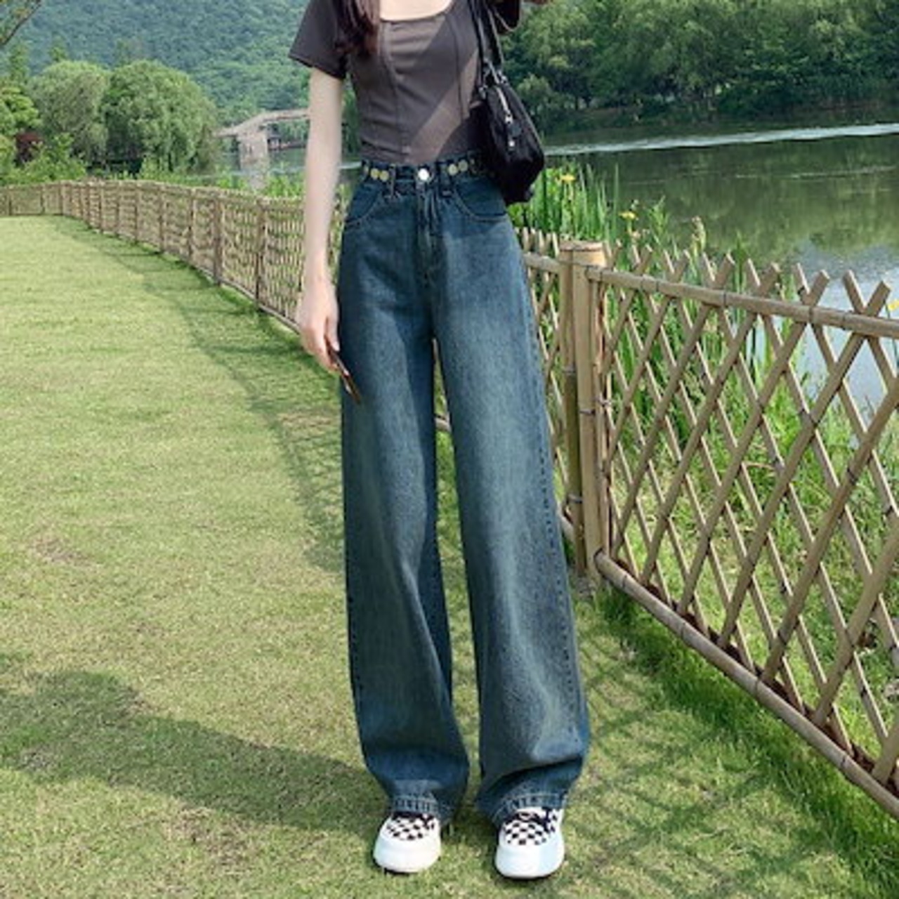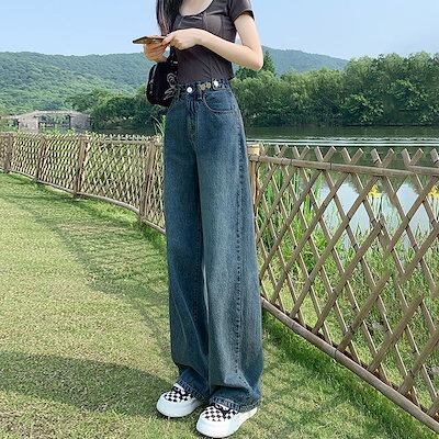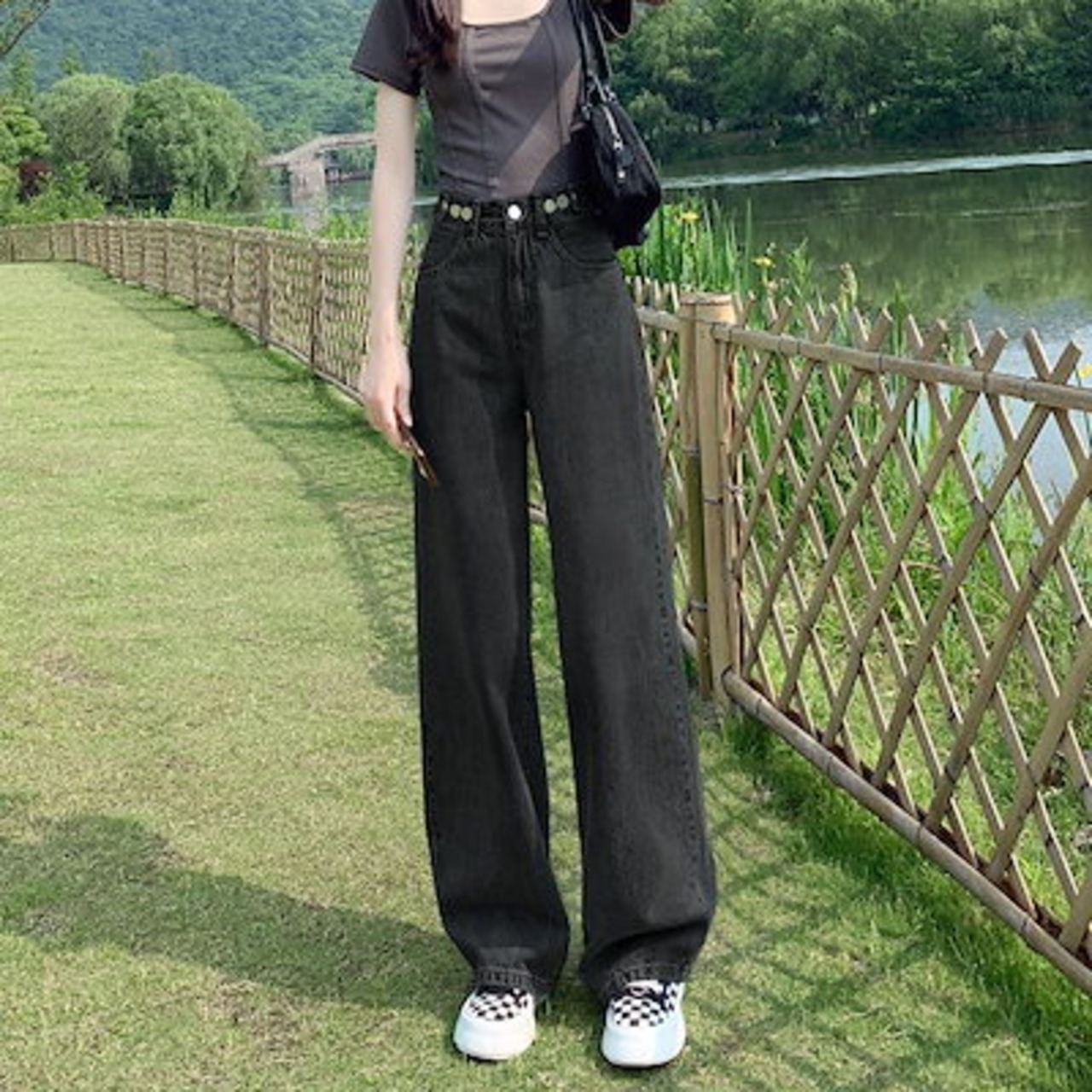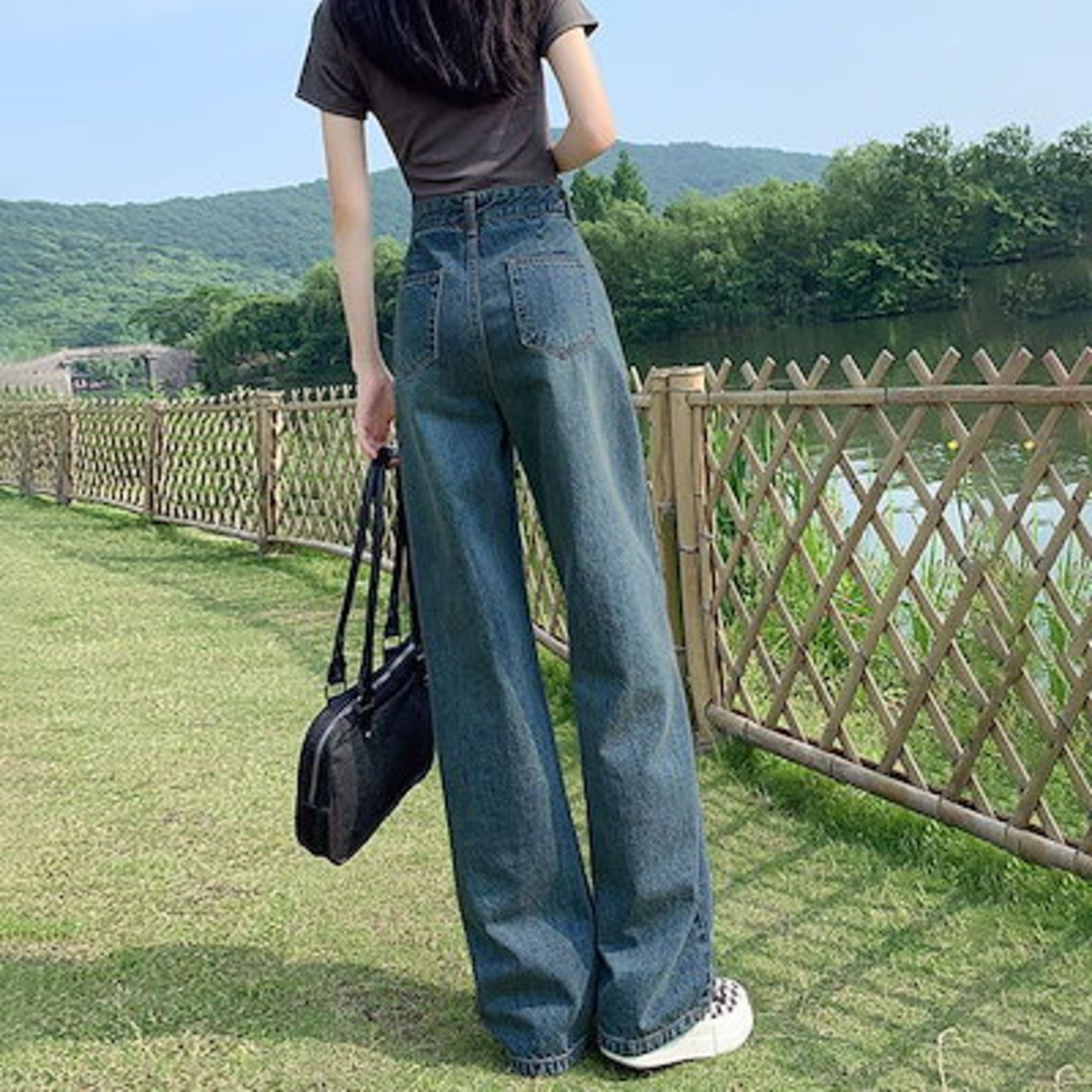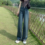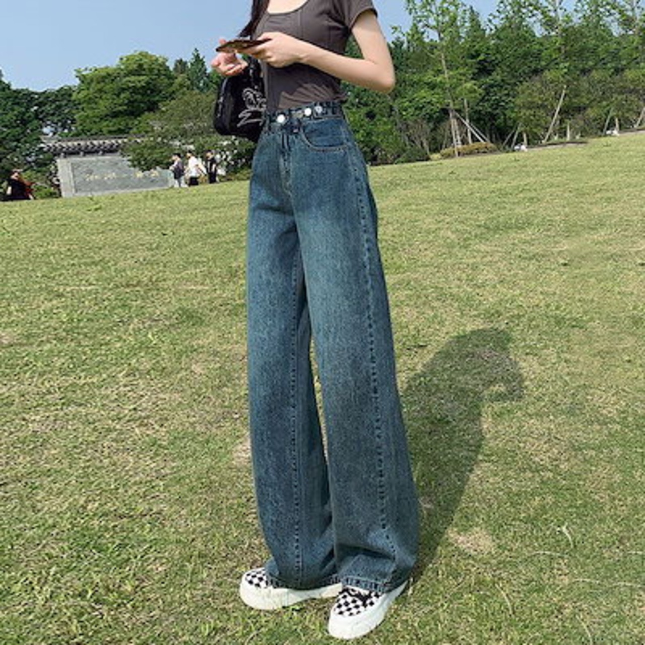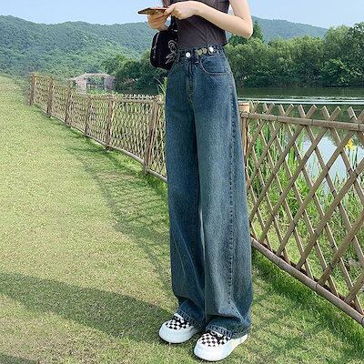 デニムパンツ ハイウエストワイドレッグジーンズ女性2024新しいストレート緩い薄いセクション薄いジーンズ