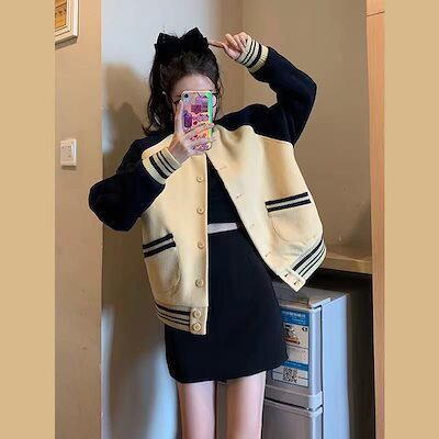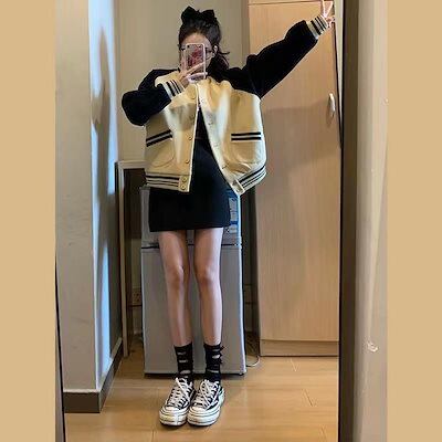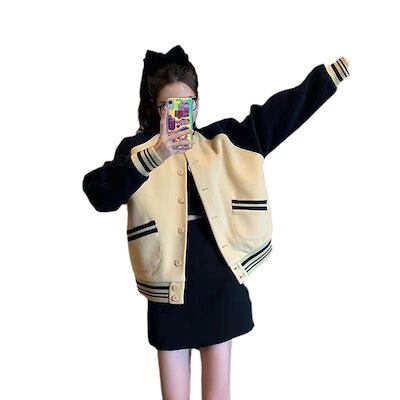 ジャケット レトロベースボールジャケットジャケット女性薄い緩い百ジャケットトップス