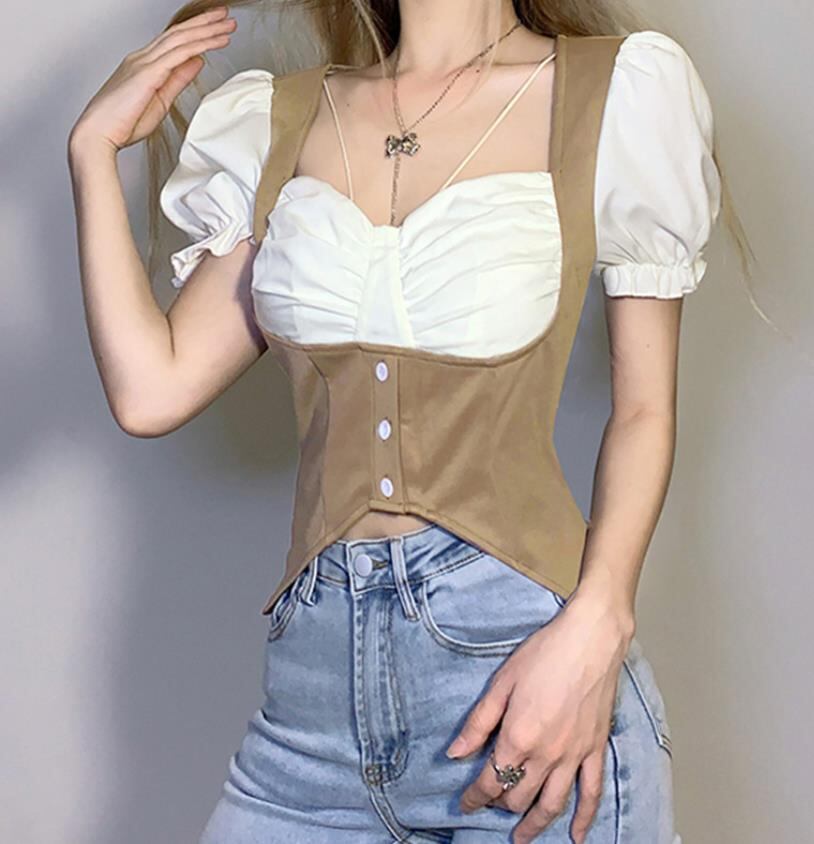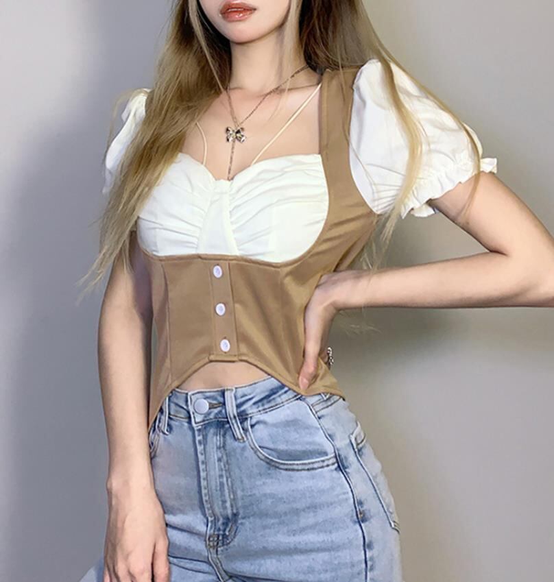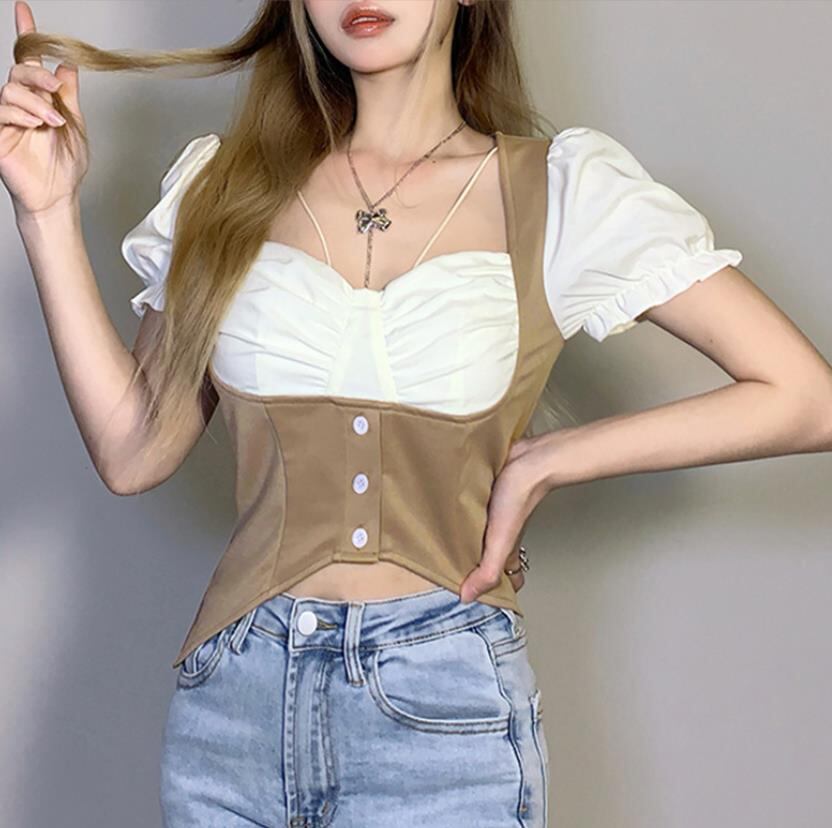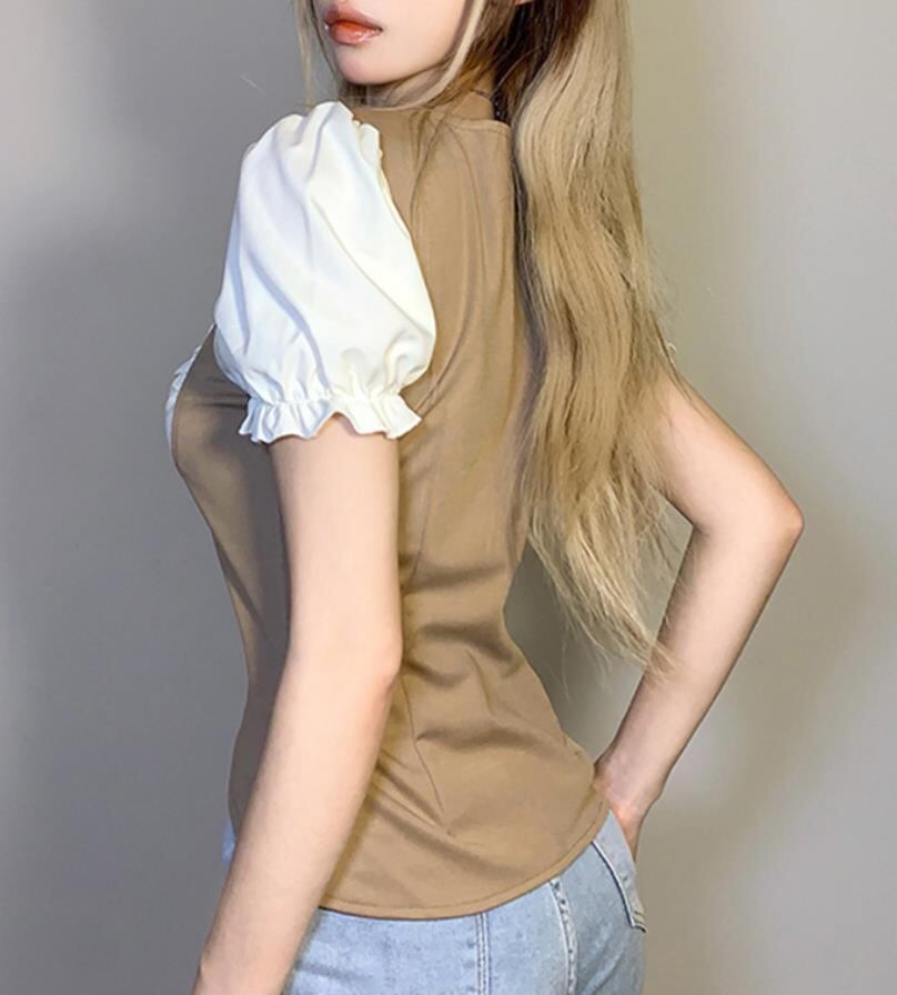 2022春夏新作 レディース 女 パフスリーブ 半袖 Tシャツ トップス インナー S-L