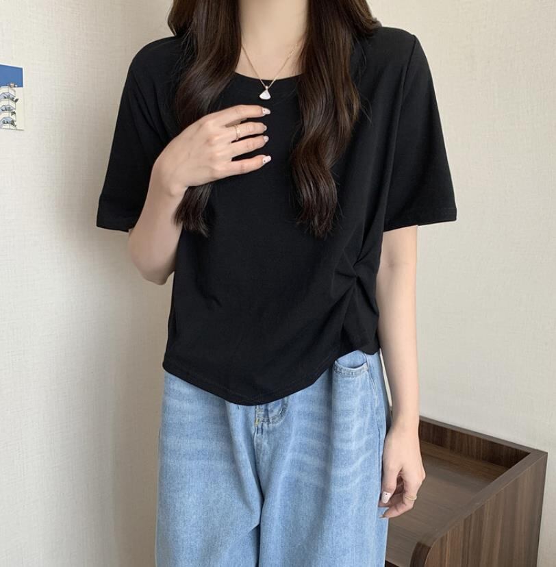 2022春夏新作 レディース 女 無地 半袖 Tシャツ トップス インナー 2色 M-2XL