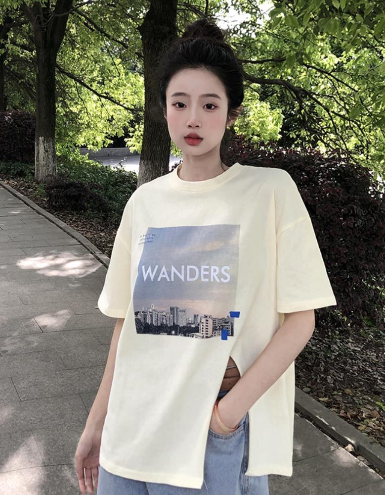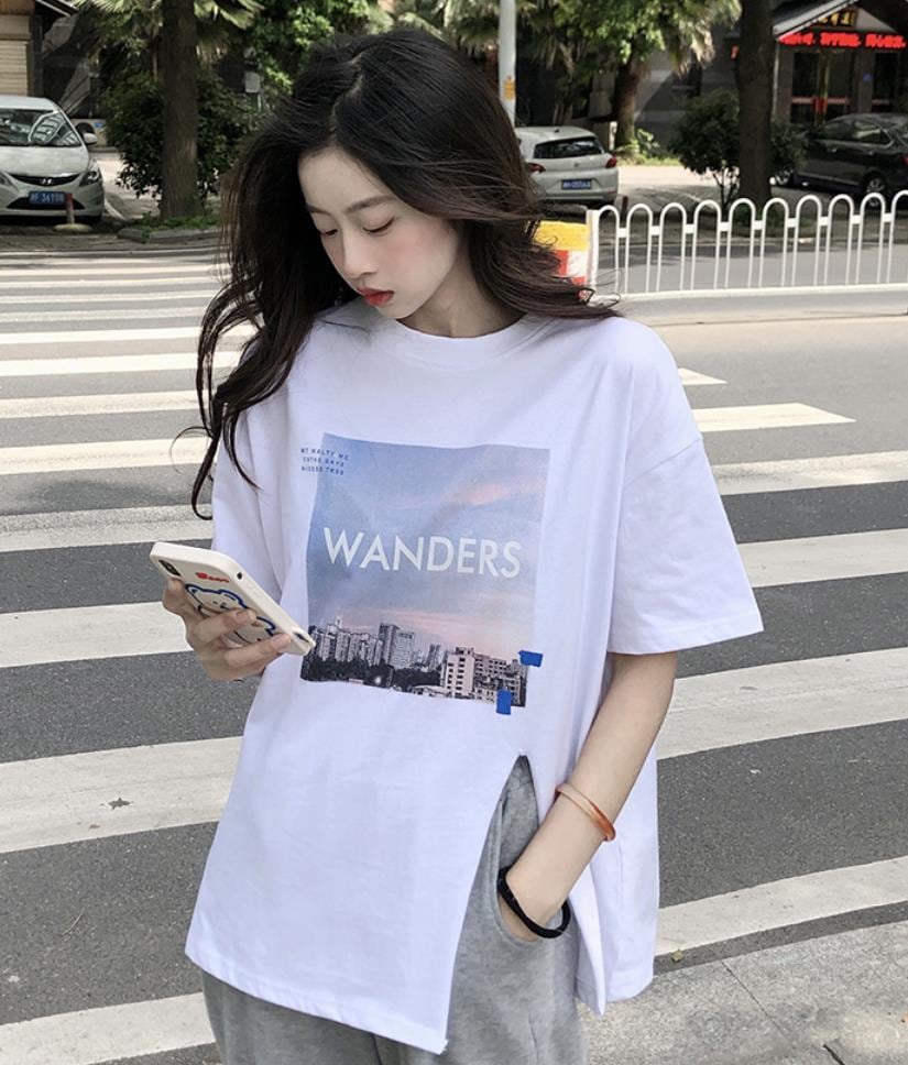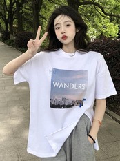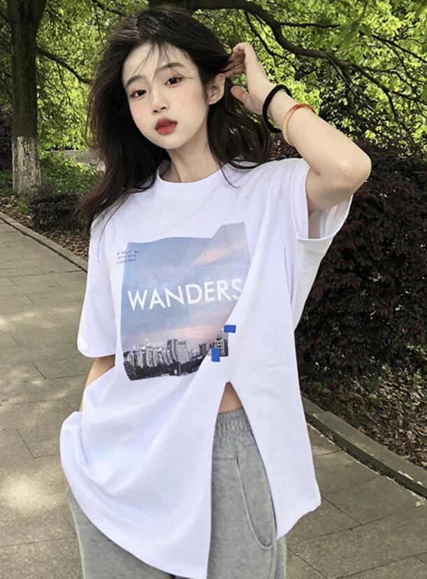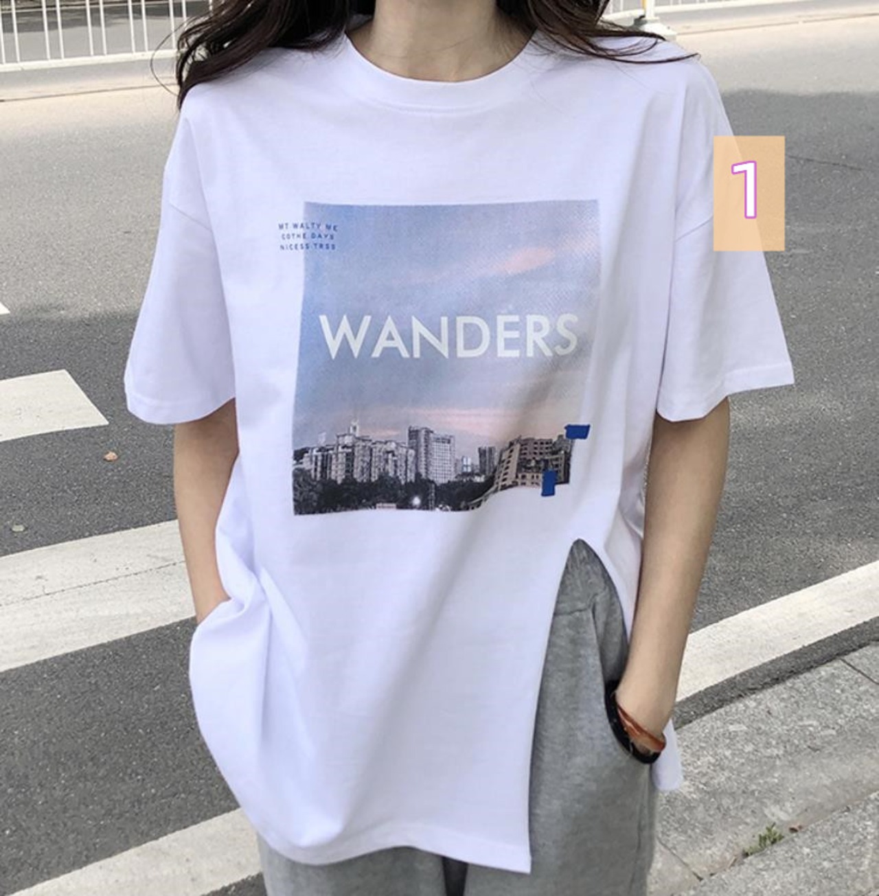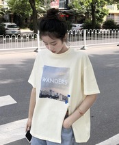 2022春夏新作 レディース 女 綿 プリント 丸首 半袖 Tシャツ トップス インナー 2色