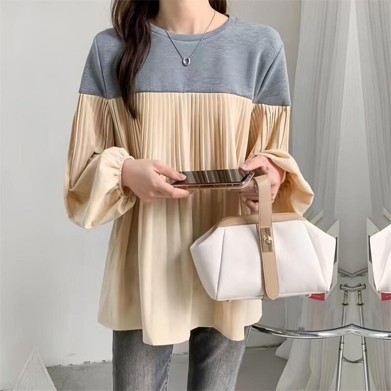 初回送料無料 新作レディースファッション カジュアル パッチワーク 長袖 着やせ 人気トップス