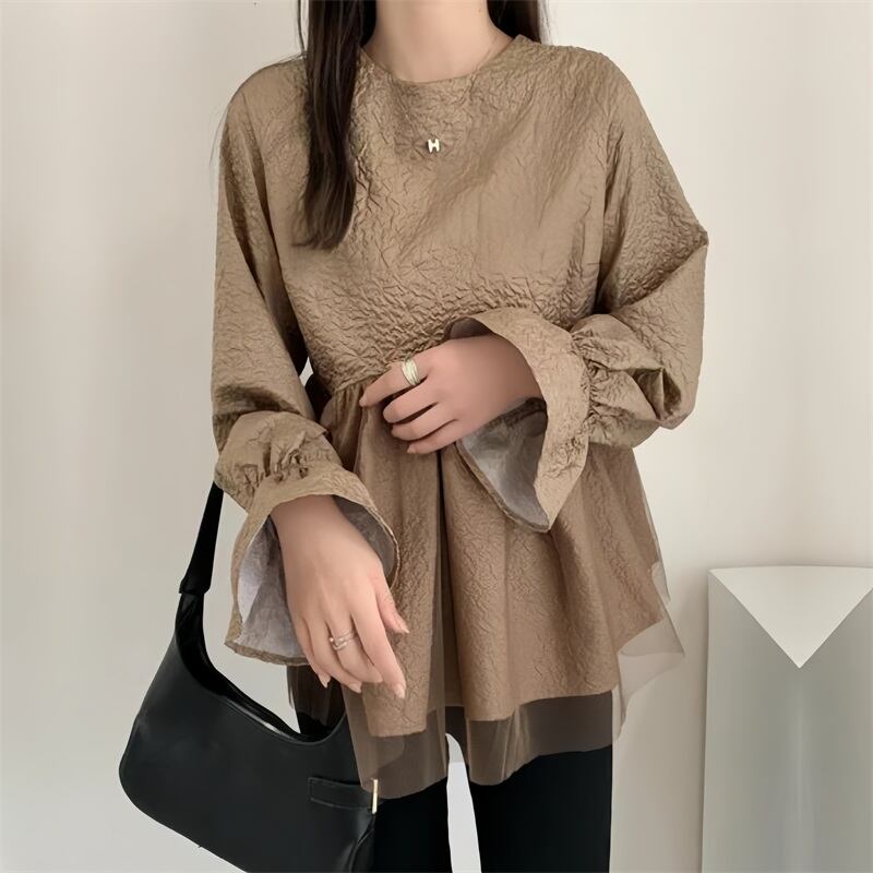 初回送料無料 新作レディースファッション カジュアル フェイク2枚 長袖 着やせ 人気トップス