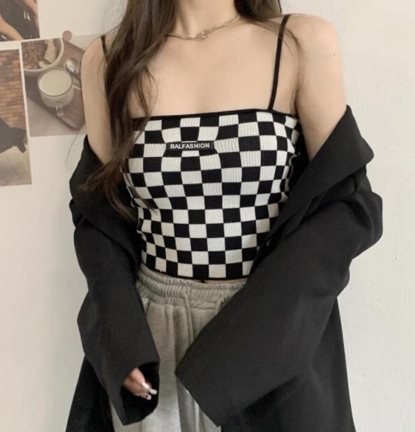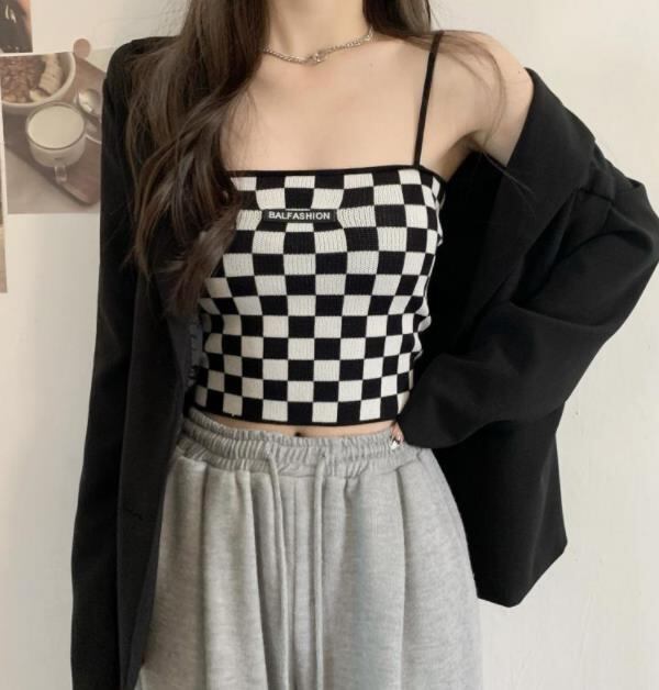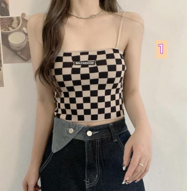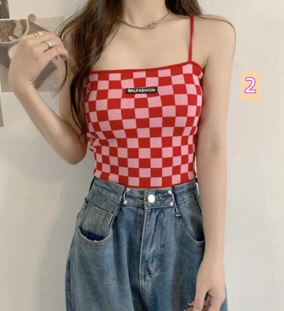 春夏新作 レディース 女 袖なし チェック柄 トップス Tシャツ インナー キャミソール タンクトップ