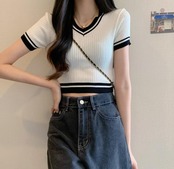 2022春夏新作 レディース 女 半袖 ニット 毛糸 トップス Tシャツ インナー カットソー 3色