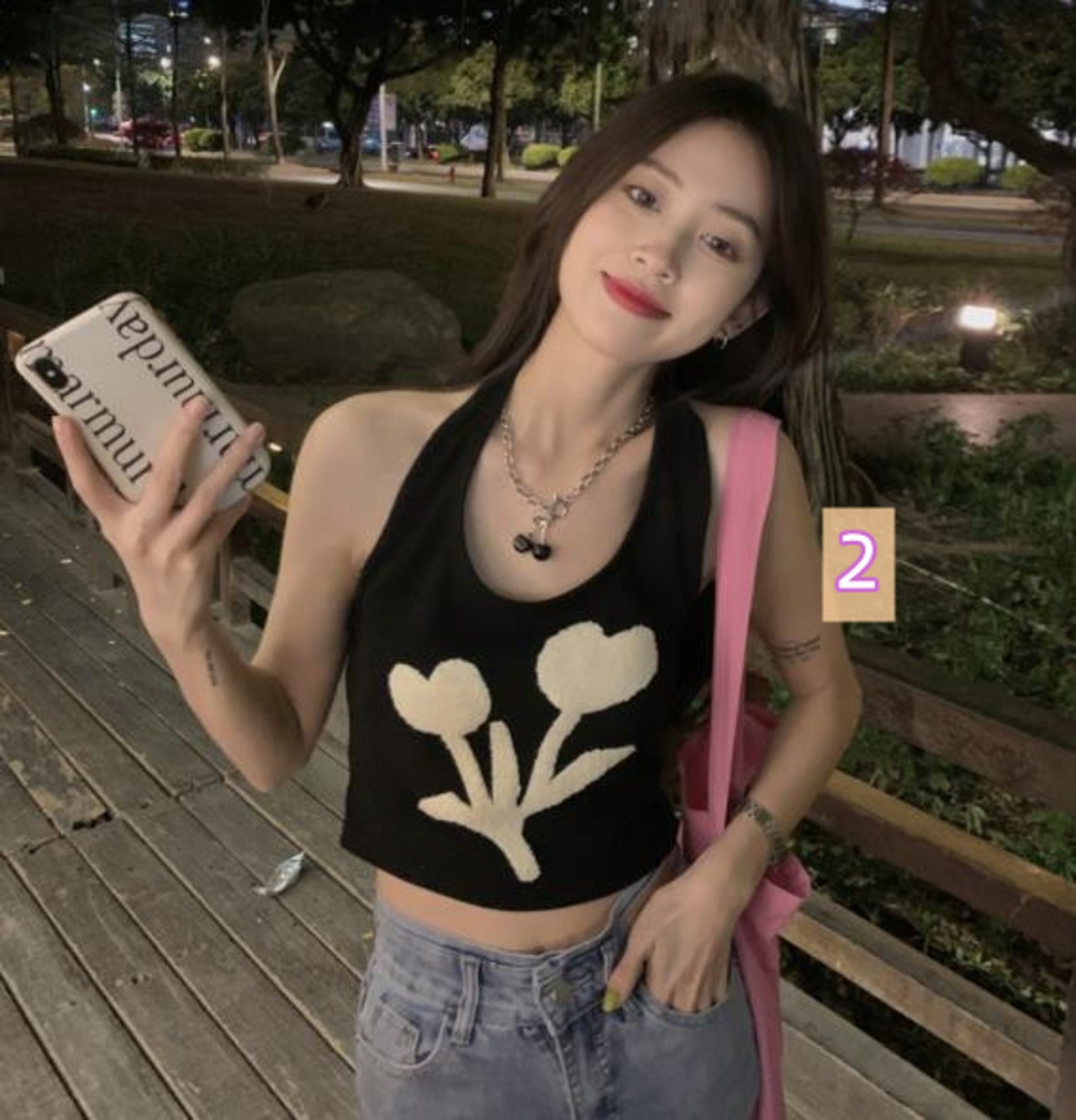 2022春夏新作 レディース 女 袖なし ニット トップス Tシャツ インナー キャミソール タンクトップ 2色