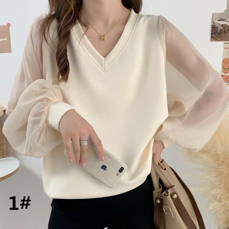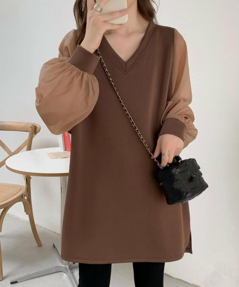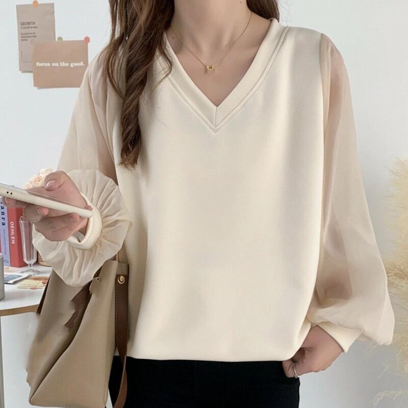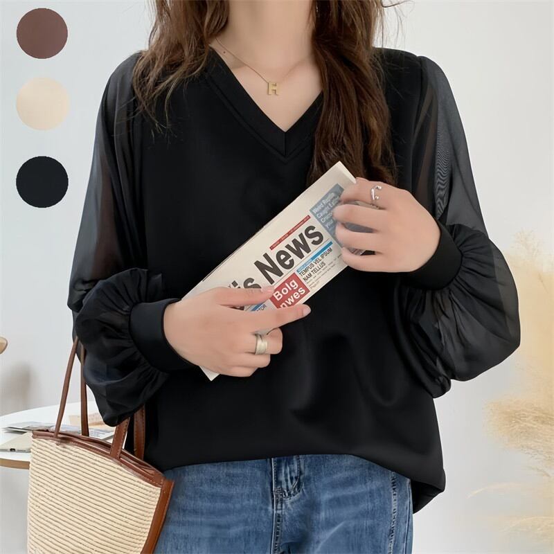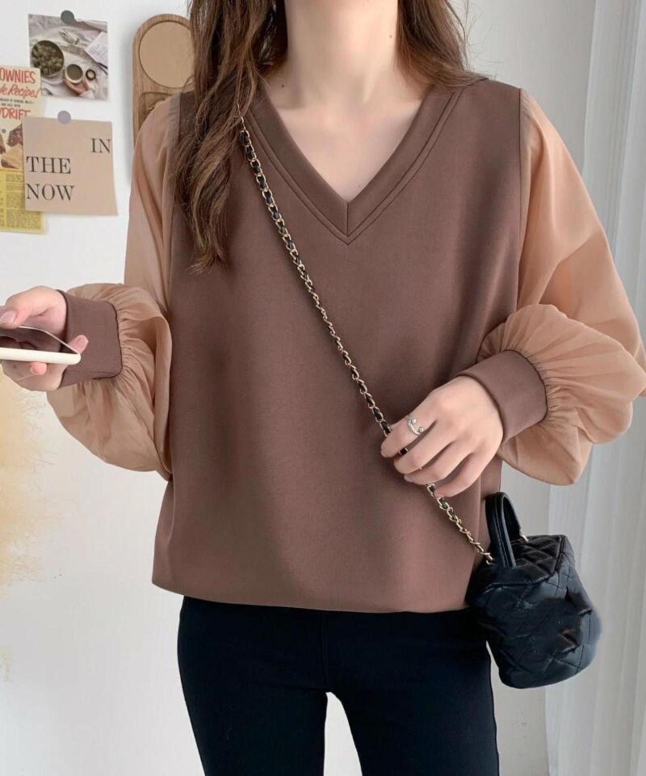 2024年春夏新作 トップス プルオーバー レディース ランタンスリープ Vネック 気質 オシャレ 着回し