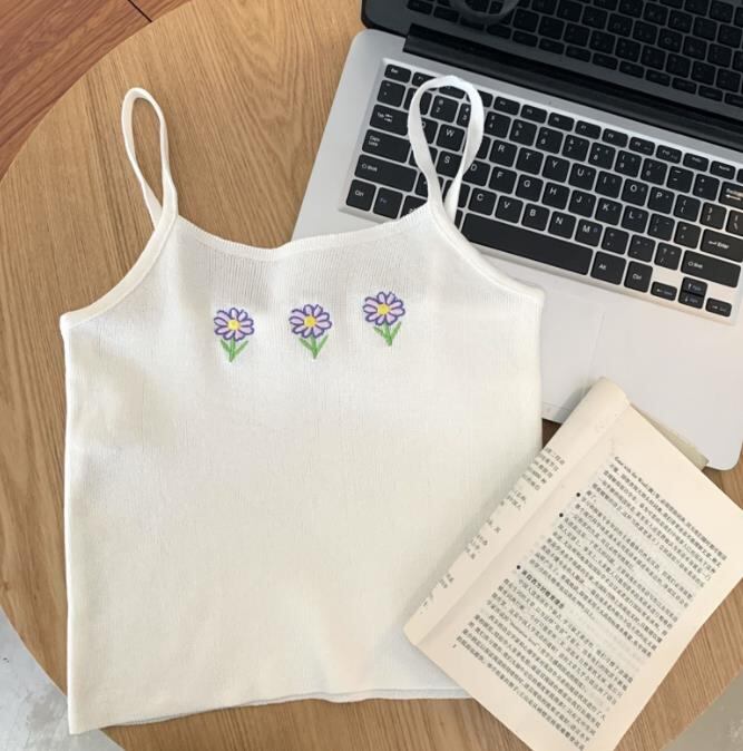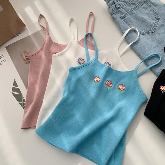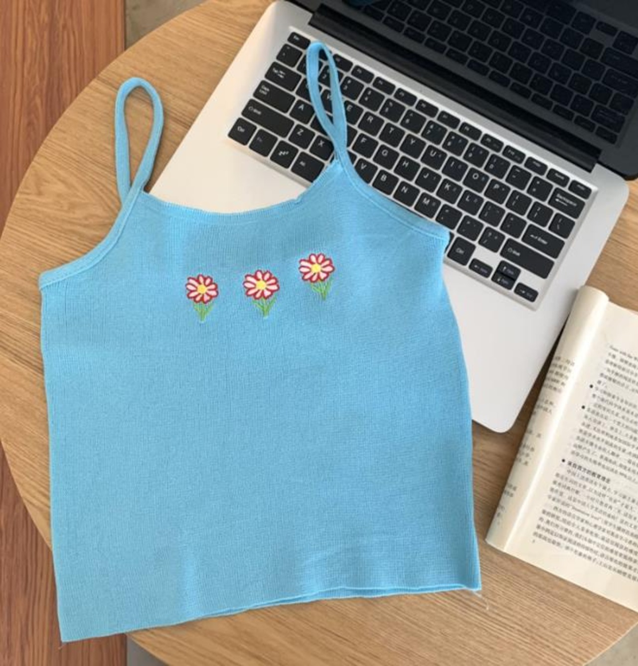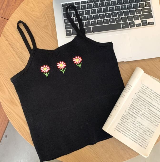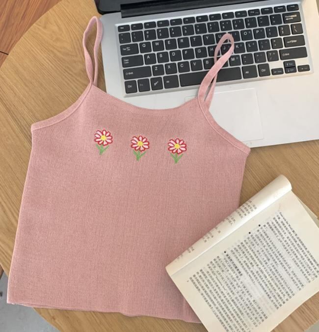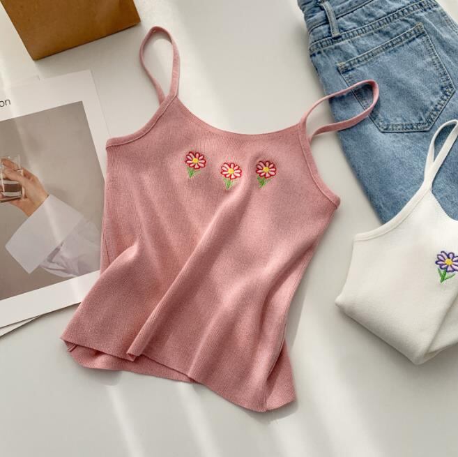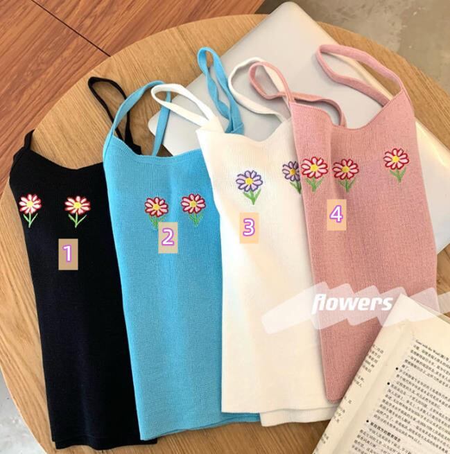 春夏新作 レディース 女 袖なし 刺繍 ニット トップス Tシャツ インナー キャミソール タンクトップ