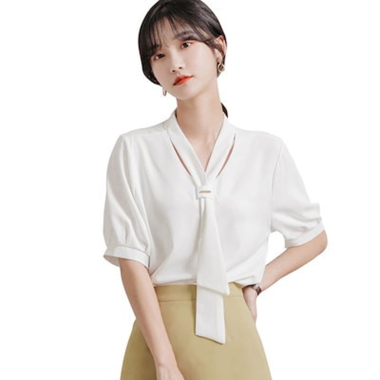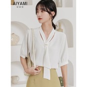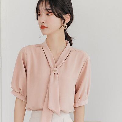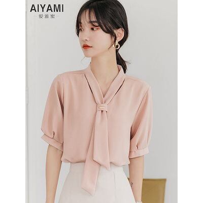 ブラウス 2024夏新作シャツ蝶結び半袖レディーストップス