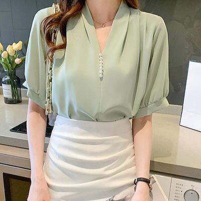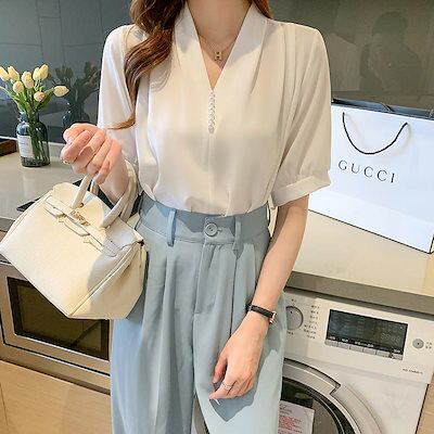 ブラウス 半袖シフォンシャツ 2024年夏新作シャツ