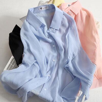 ブラウス シフォン太陽シャツ夏の新しいカーディガンシャツトップス