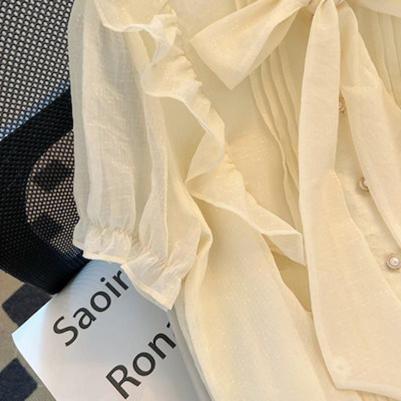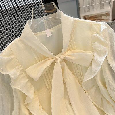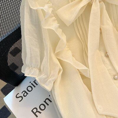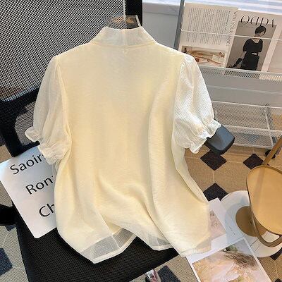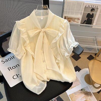 ブラウス リボンシフォンブラウス 半袖トップス