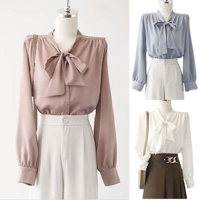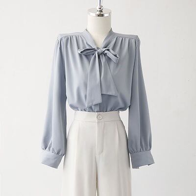 ブラウス ボウタイブラウス秋の新作トップスシフォン長袖シャツ