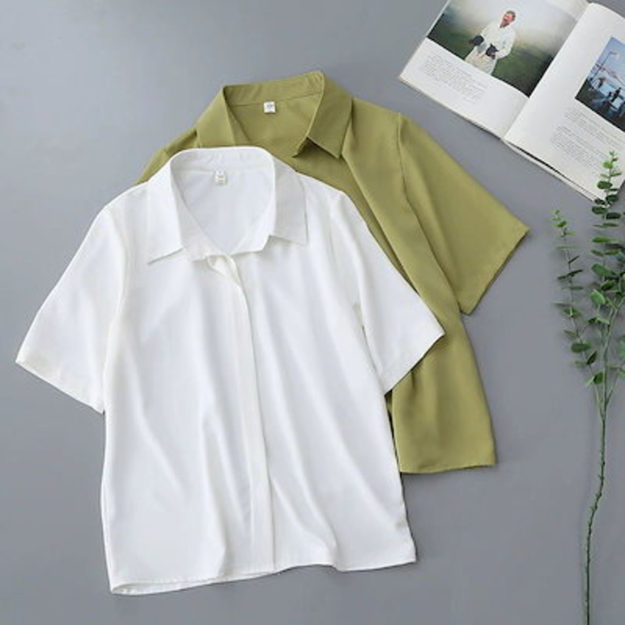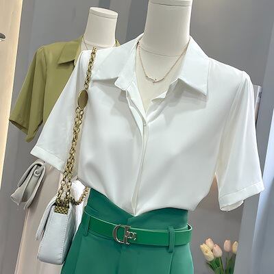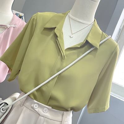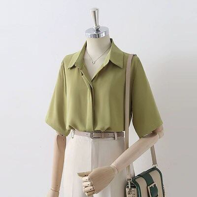 ブラウス シンプル通勤シフォン半袖シャツ女性2024夏新作カジュアルトップス