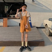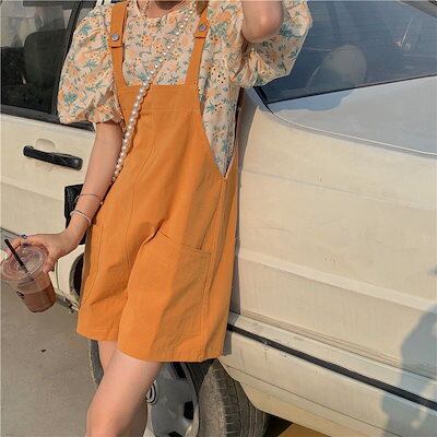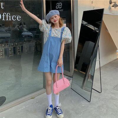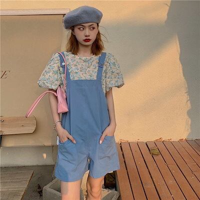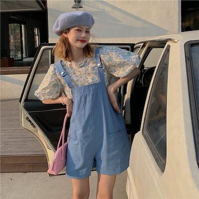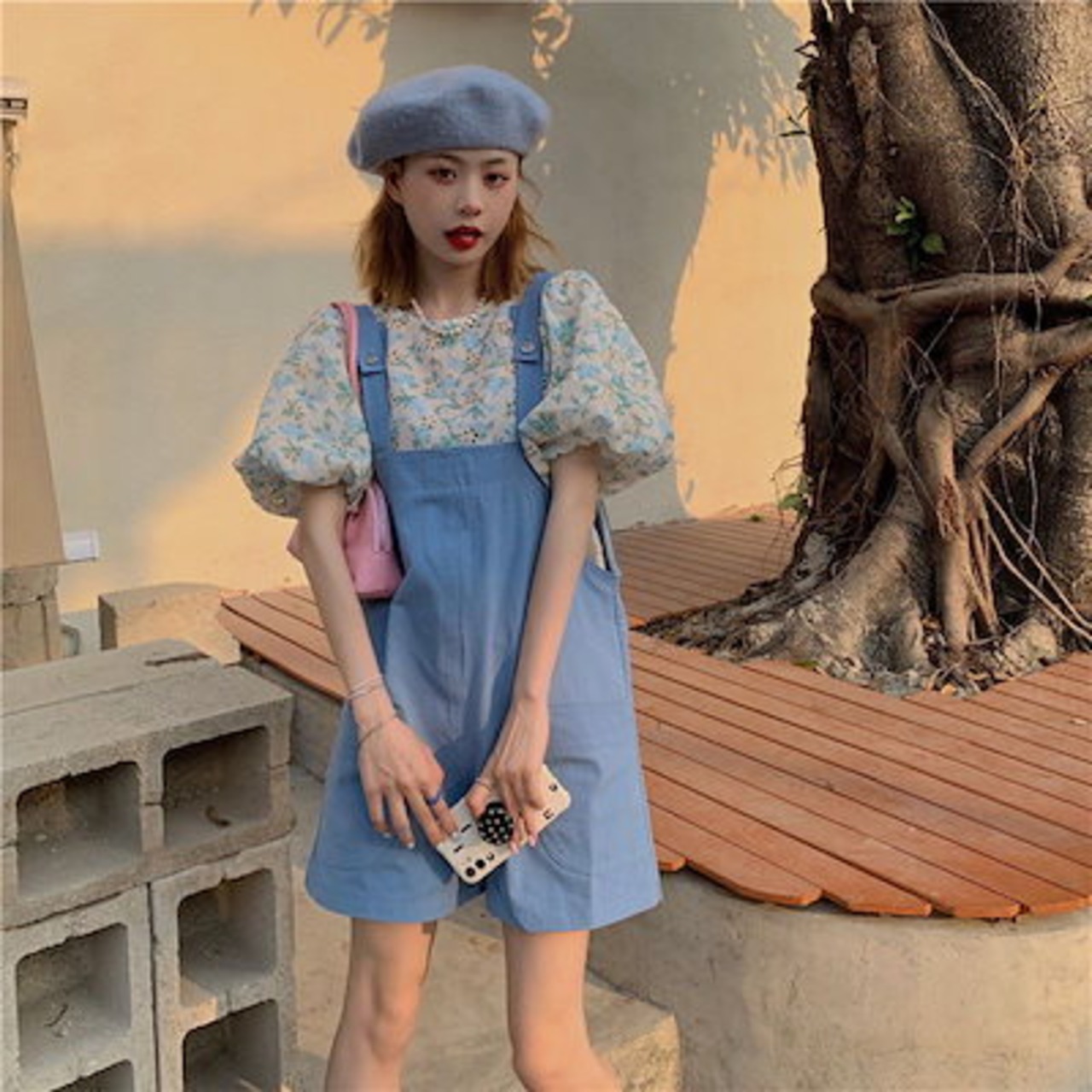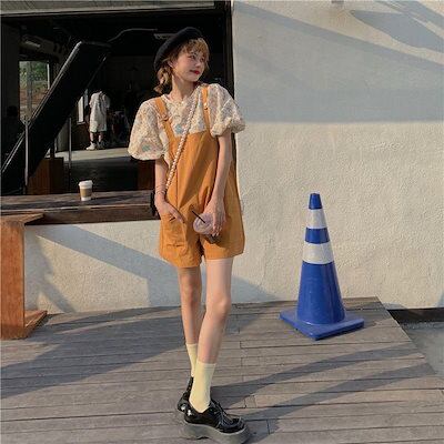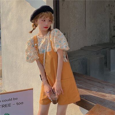 コーデ完成!サロペット 夏2024新しい緩いファッションバブルスリーブトップカジュアルバックショーツ2点セット