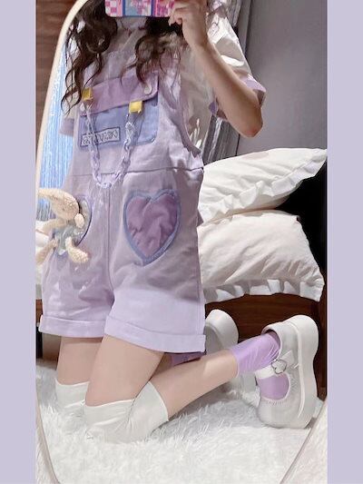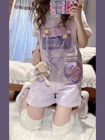 コーデ完成!サロペット 夏カレッジバックレスカジュアルパンツショーツ
