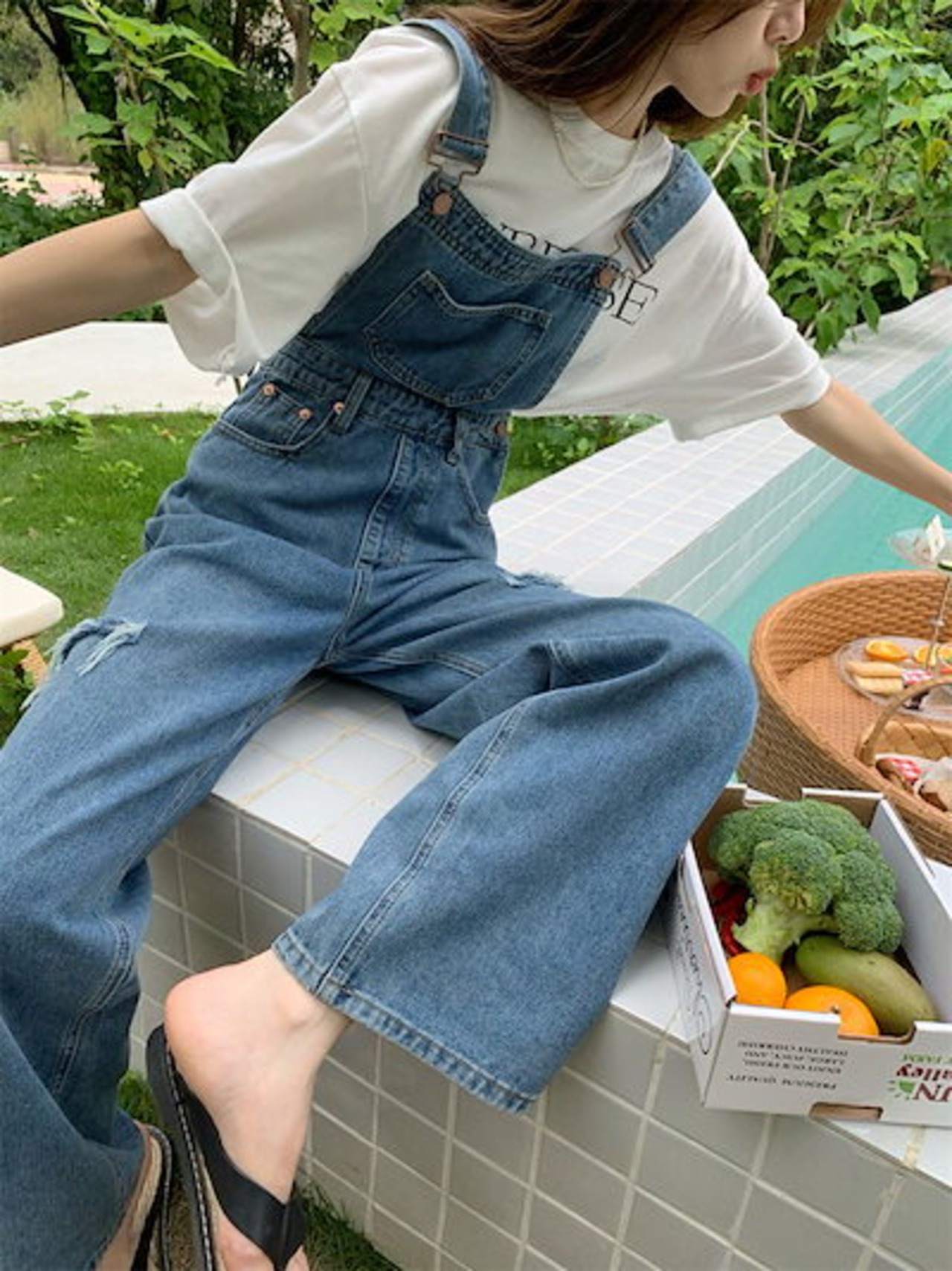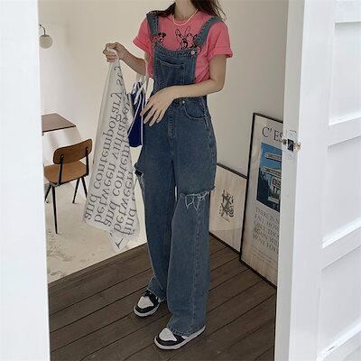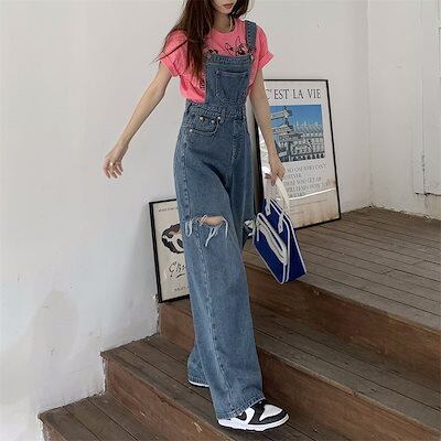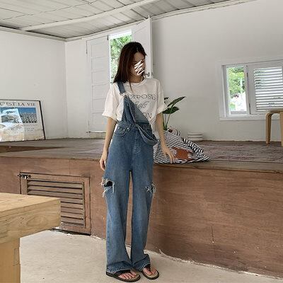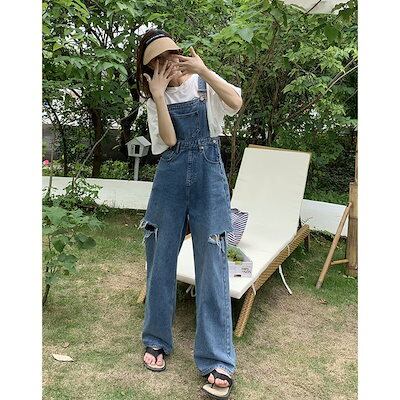 コーデ完成!サロペット サスペンダー ジーンズ レディース 夏 バックパンツ ワイドパンツ 折れ穴 ワンピースパンツ