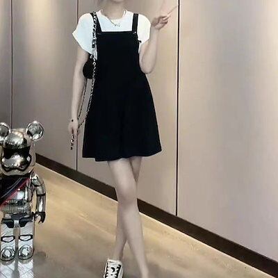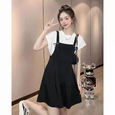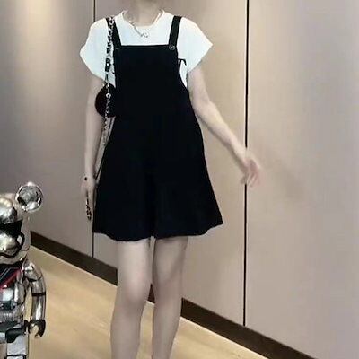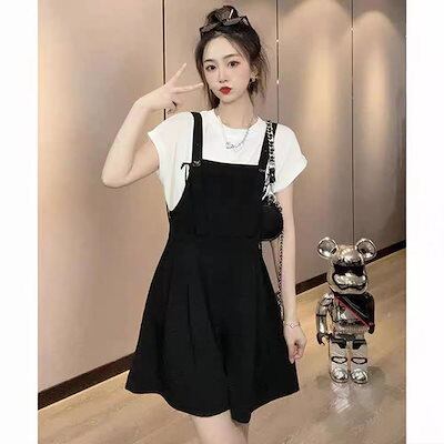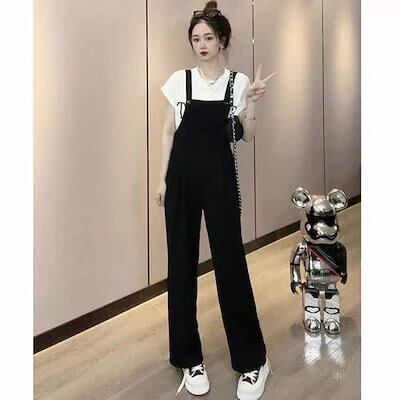 コーデ完成!サロペット ファッションカジュアルロングショーツ女性夏の新しい黒ストレートバックパンツ