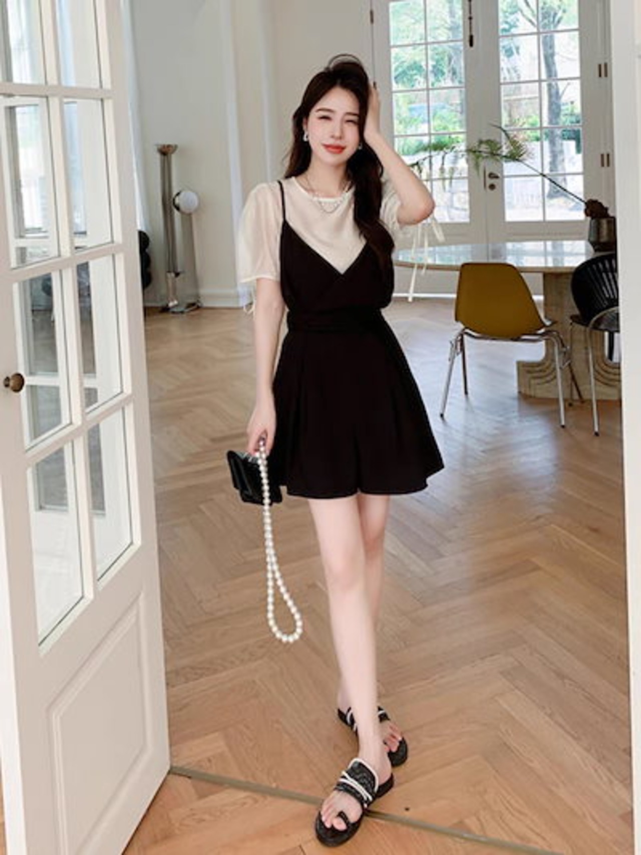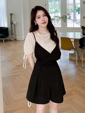 コーデ完成!サロペット リュックサック パンツ レディース 夏 ワイドパンツ ショートパンツ 2点セット