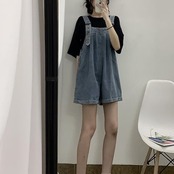 コーデ完成!サロペット デニムバックレスパンツ女性新作夏ルーズワイドパンツ