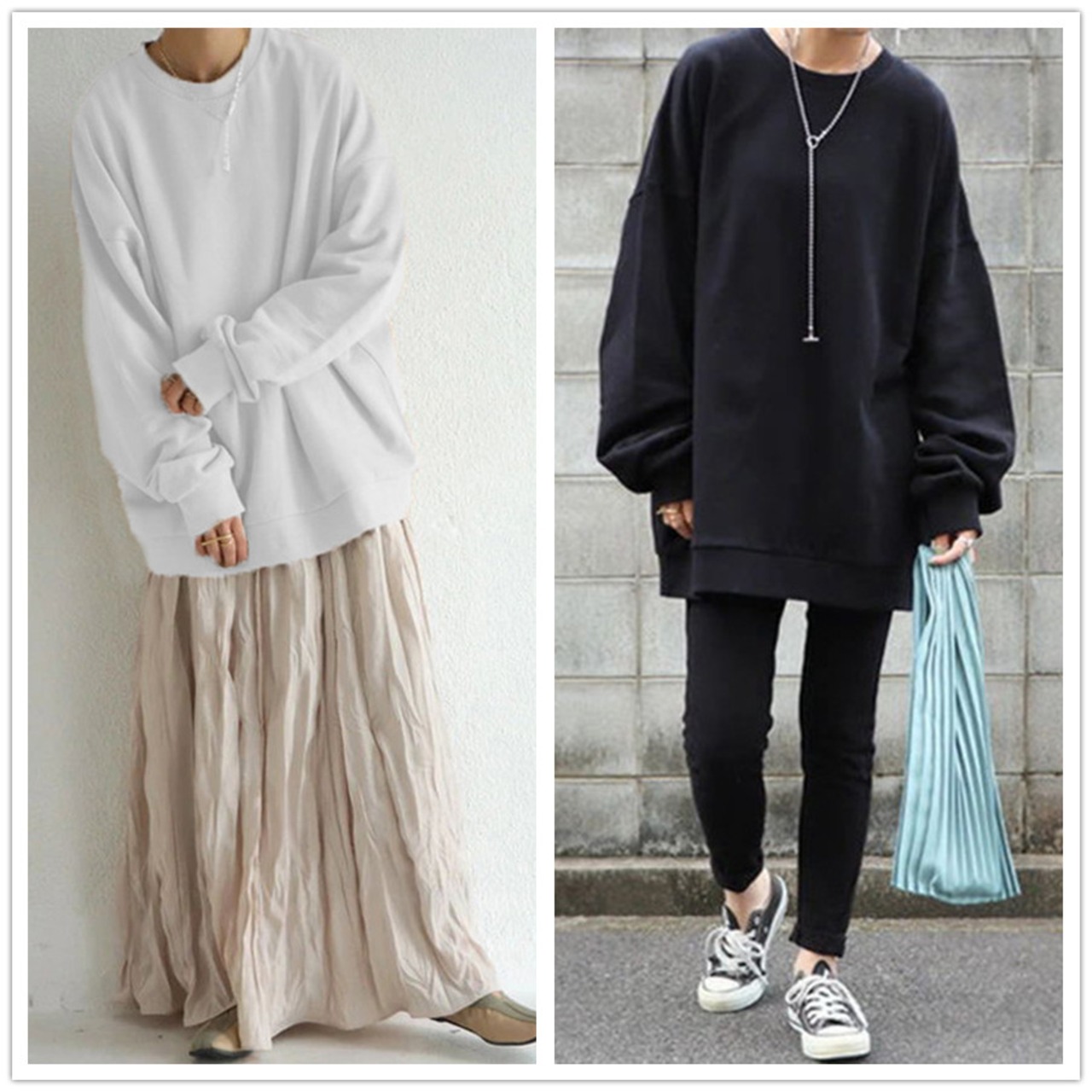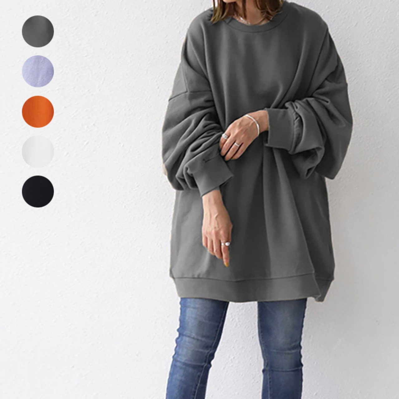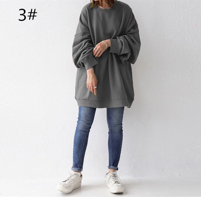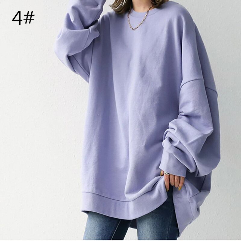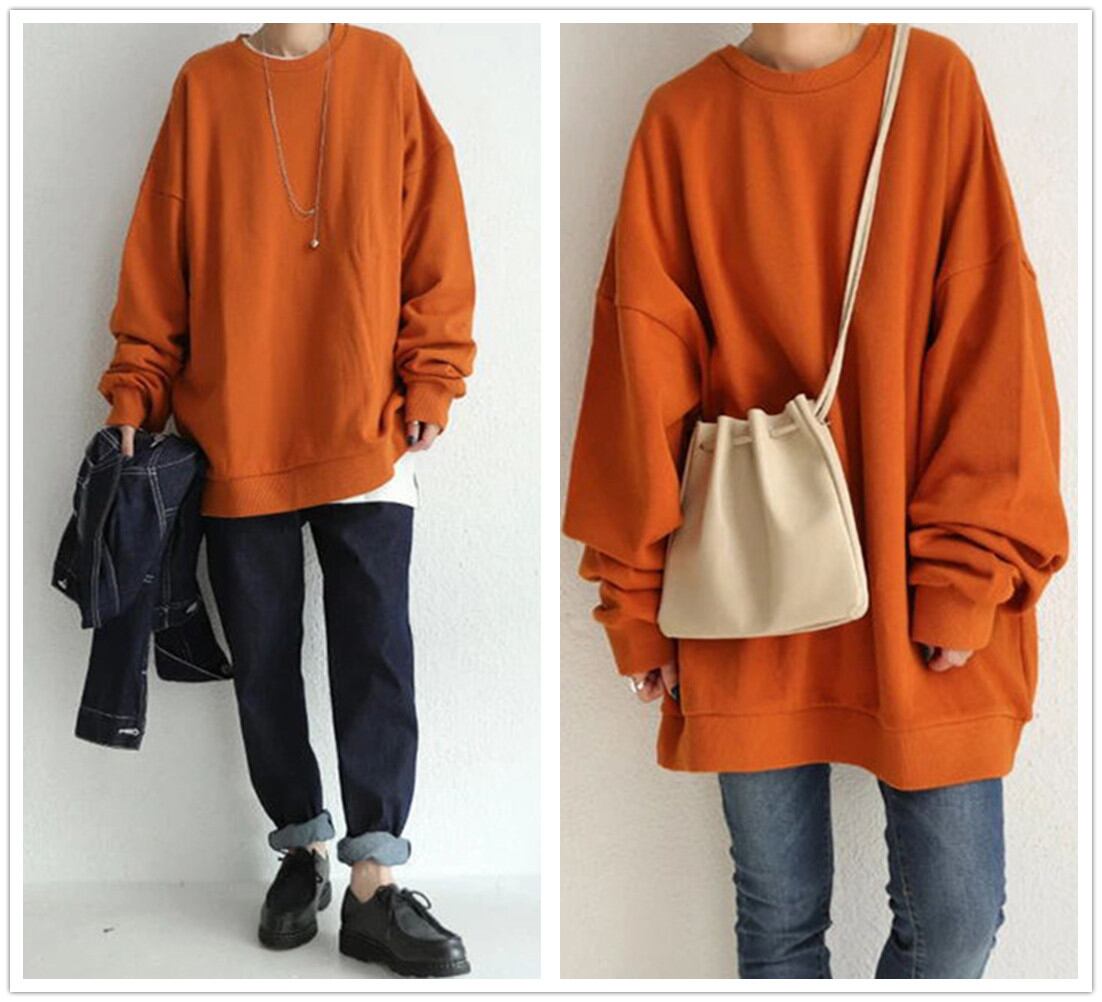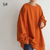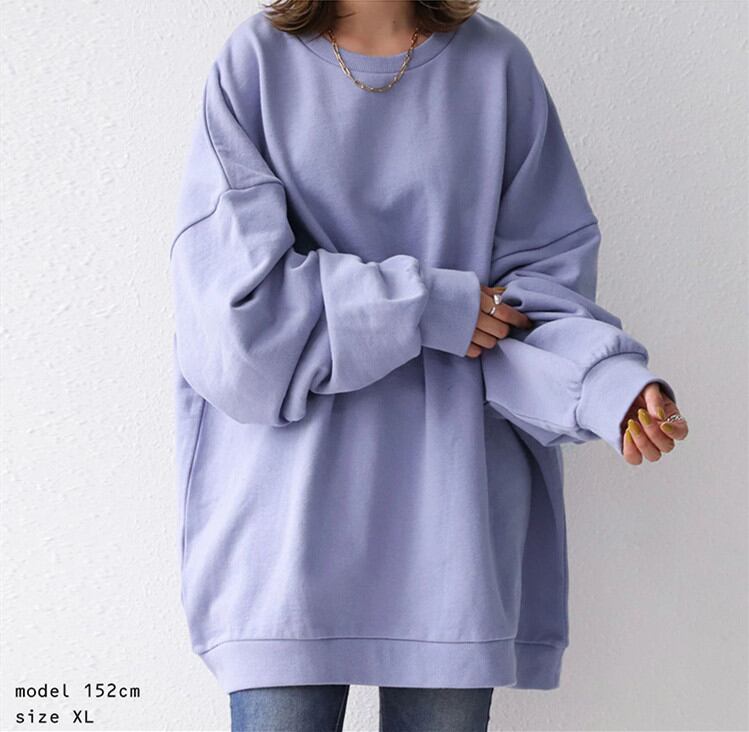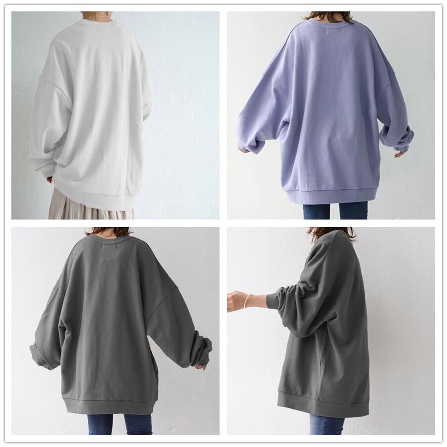 2021秋冬新作 トップス プルオーバー ラウンドネック 長袖 レディース オーバーサイズ カジュアル 無地