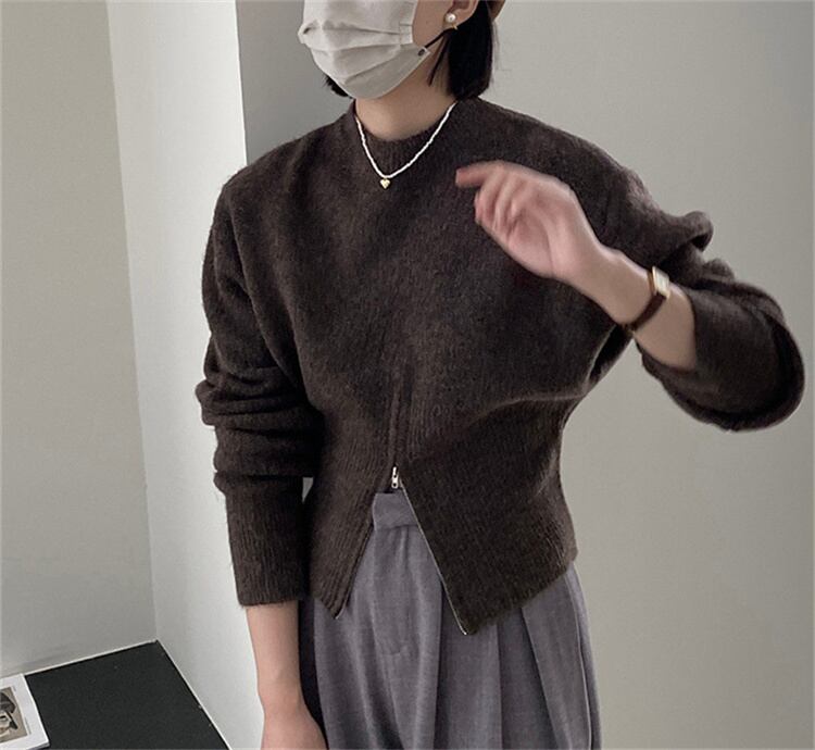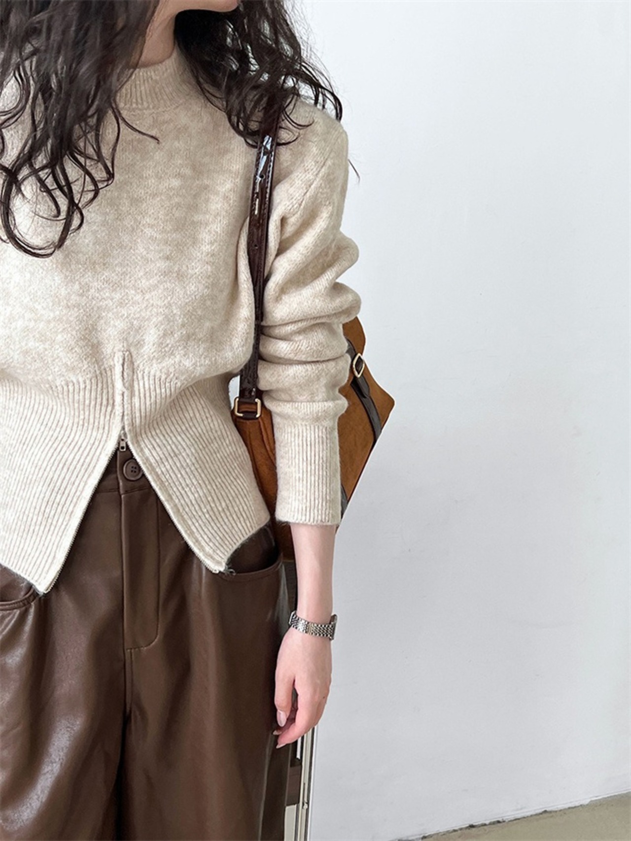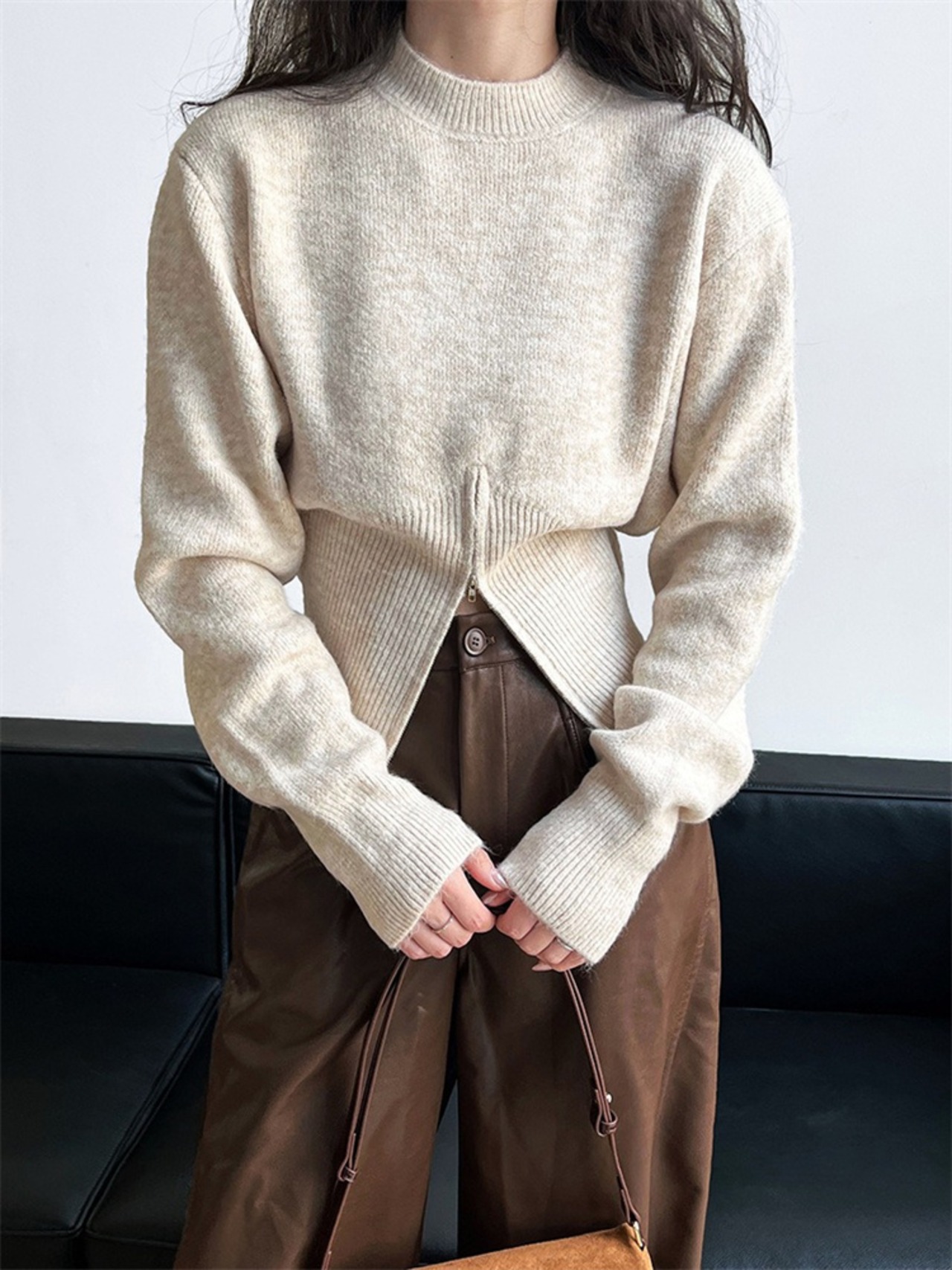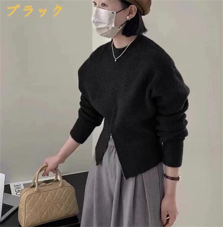 良かったです スプリットレディース 気質 秋冬 短いスタイル ジッパー ニットトップス セーター