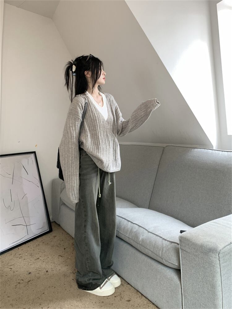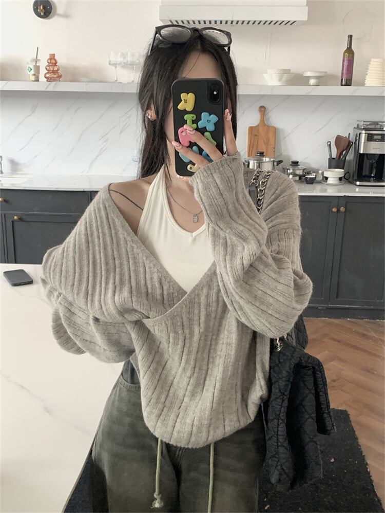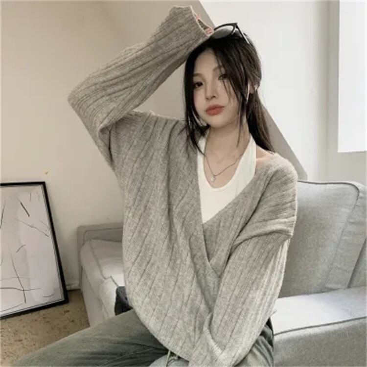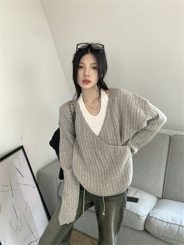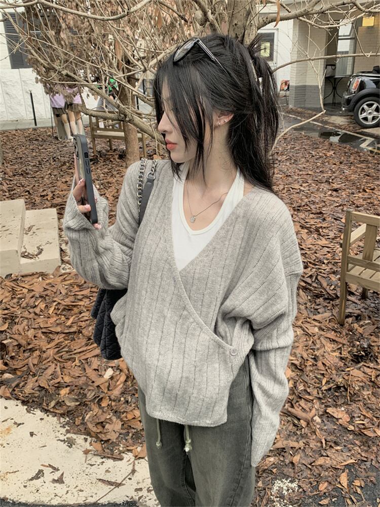 自信を持って vネック 斜めボタン ニットトップス カーディガン 秋冬 コート 長袖 トップス セーター