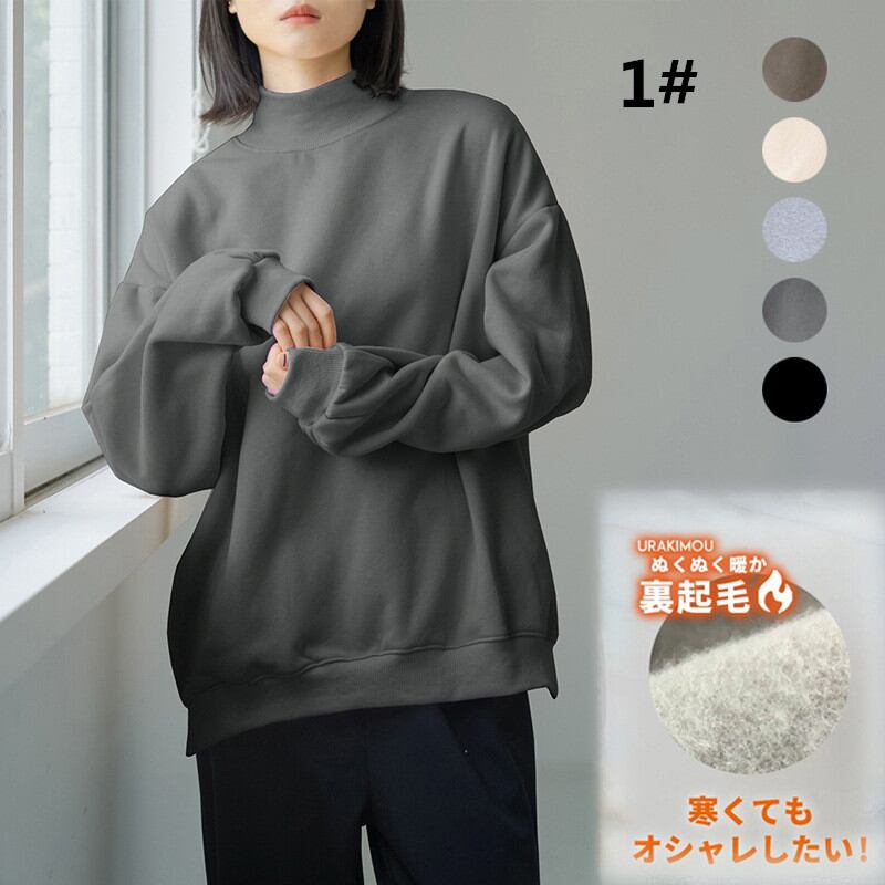 2024年秋冬新作 プルオーバー ハイネック トップス レディース 裏起毛 ビッグシルエット カジュアル
