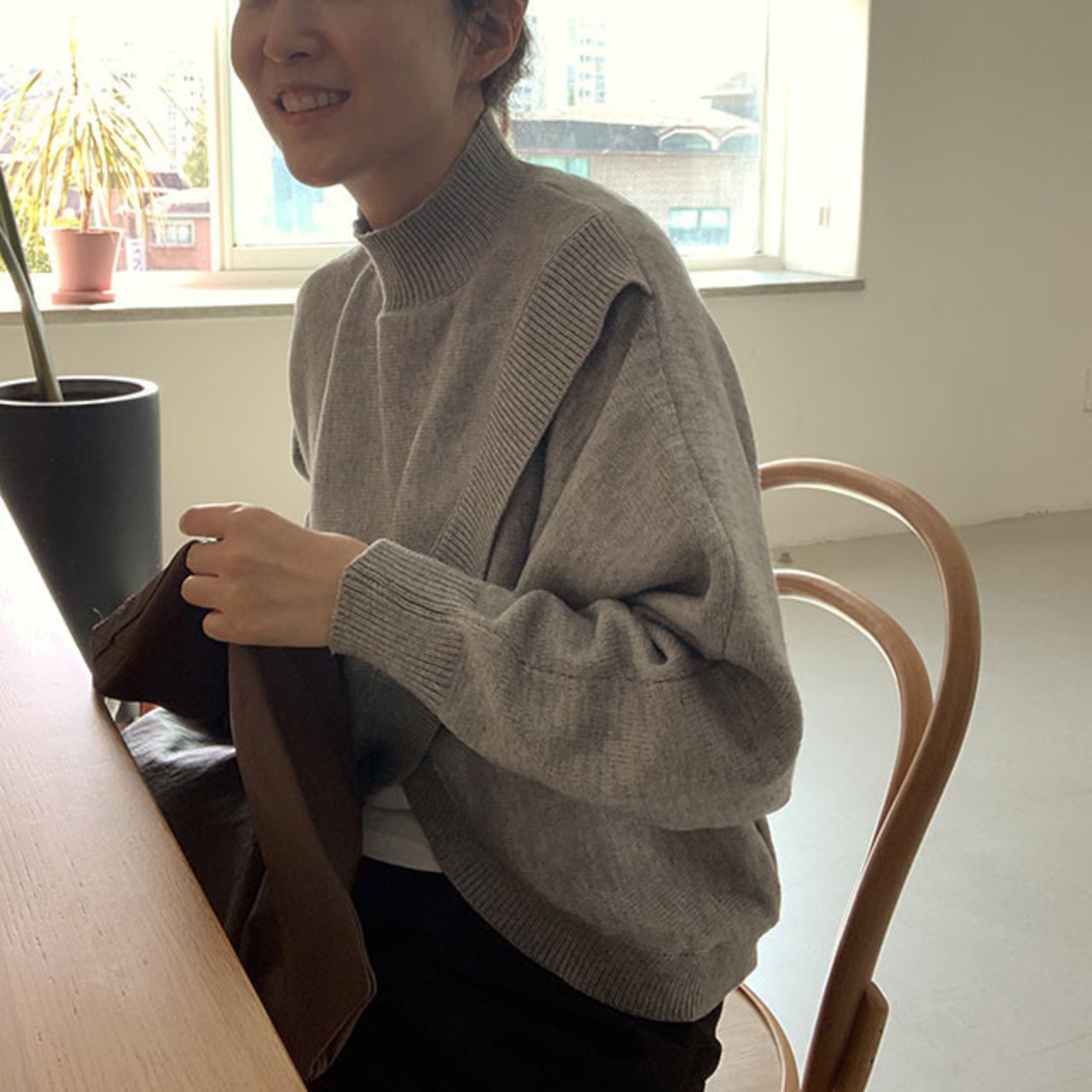 2021秋冬新作 セーター 混紡ニット スリット トップス 韓国風 レディース 大人可愛い