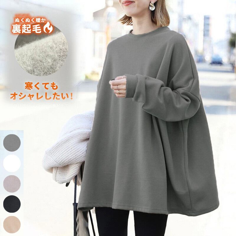 2024年秋冬新作 プルオーバー ラウンドネック トップス レディース 裏起毛 ビッグシルエット カジュアル