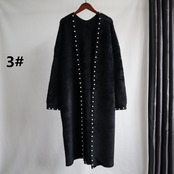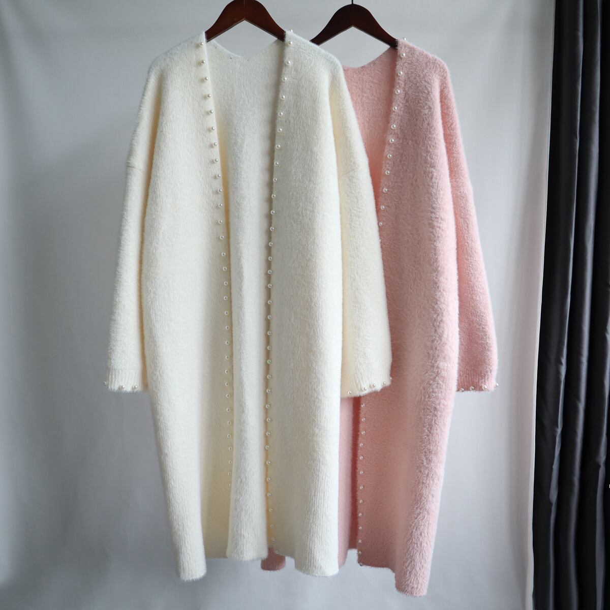 カーディガン ロング丈 レディース ニット トップス 秋冬新作 パール付き 長袖 カーデ 大人 オシャレ