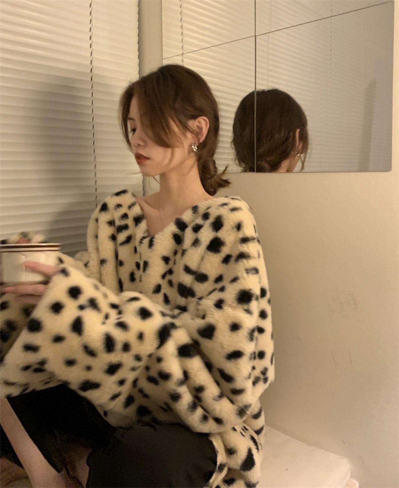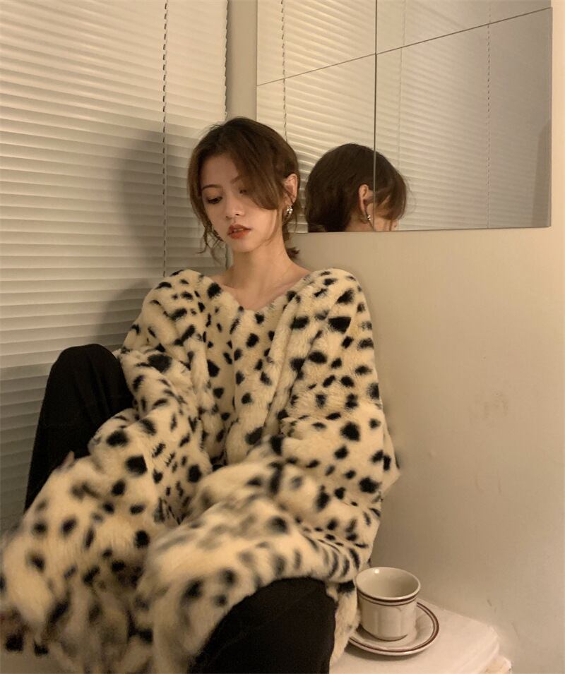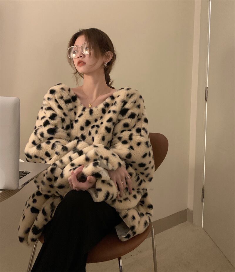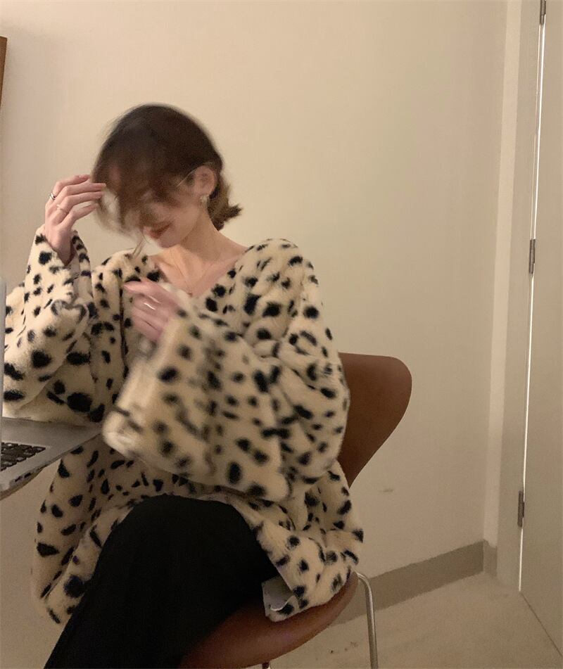 2021秋冬新作 ボアアウター プルオーバー トップス 豹柄 レディース 防寒 ボリューム