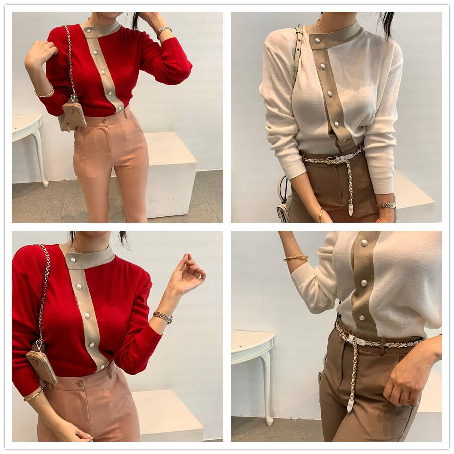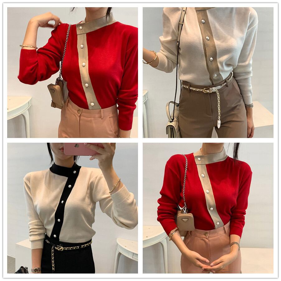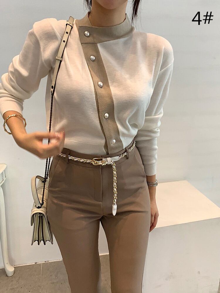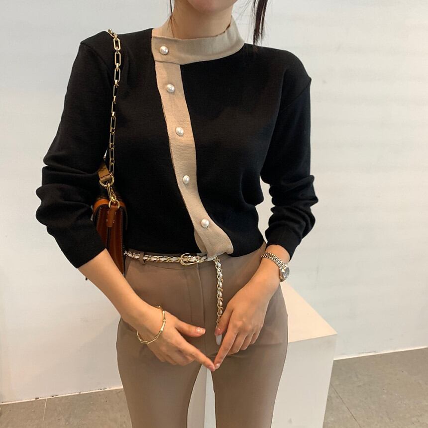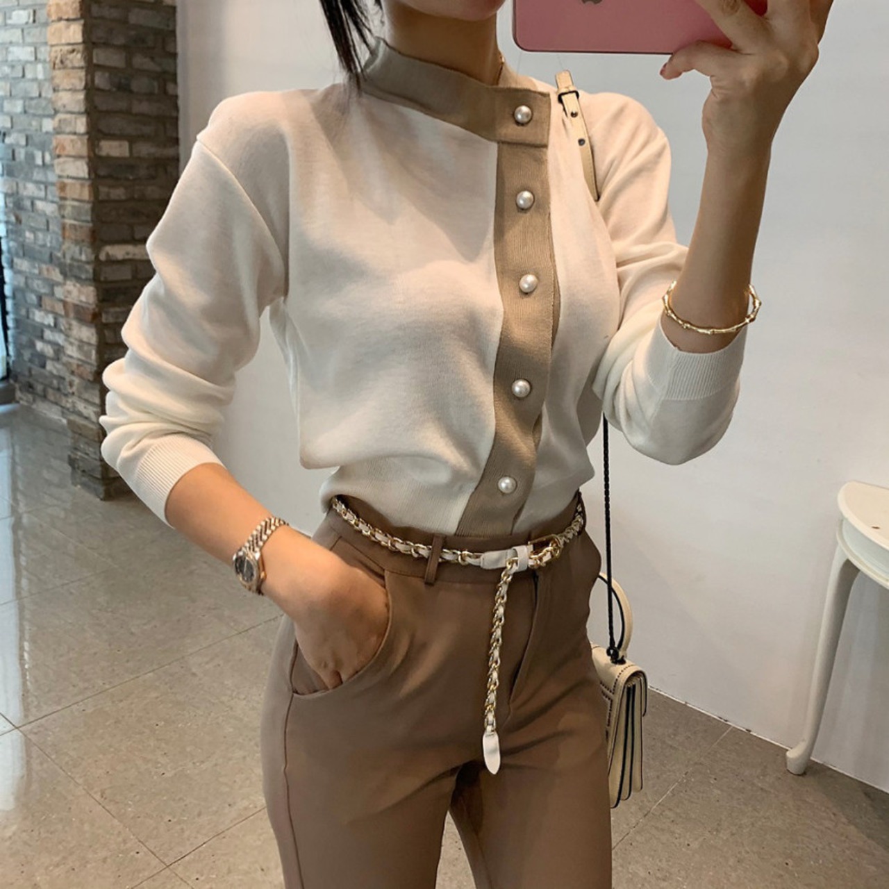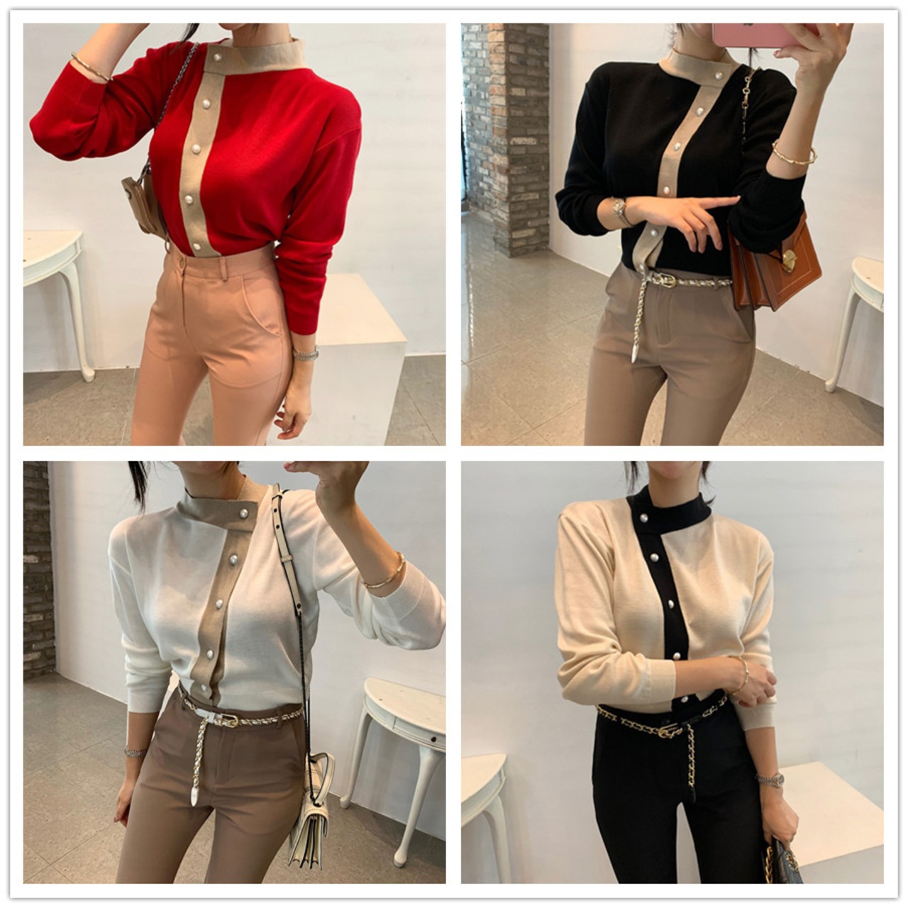 2021秋冬新作 セーター 混紡ニット パールボタン トップス 韓国風 レディース 大人可愛い
