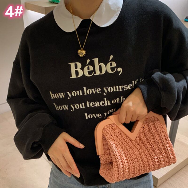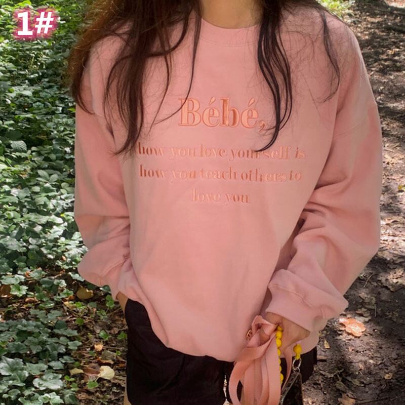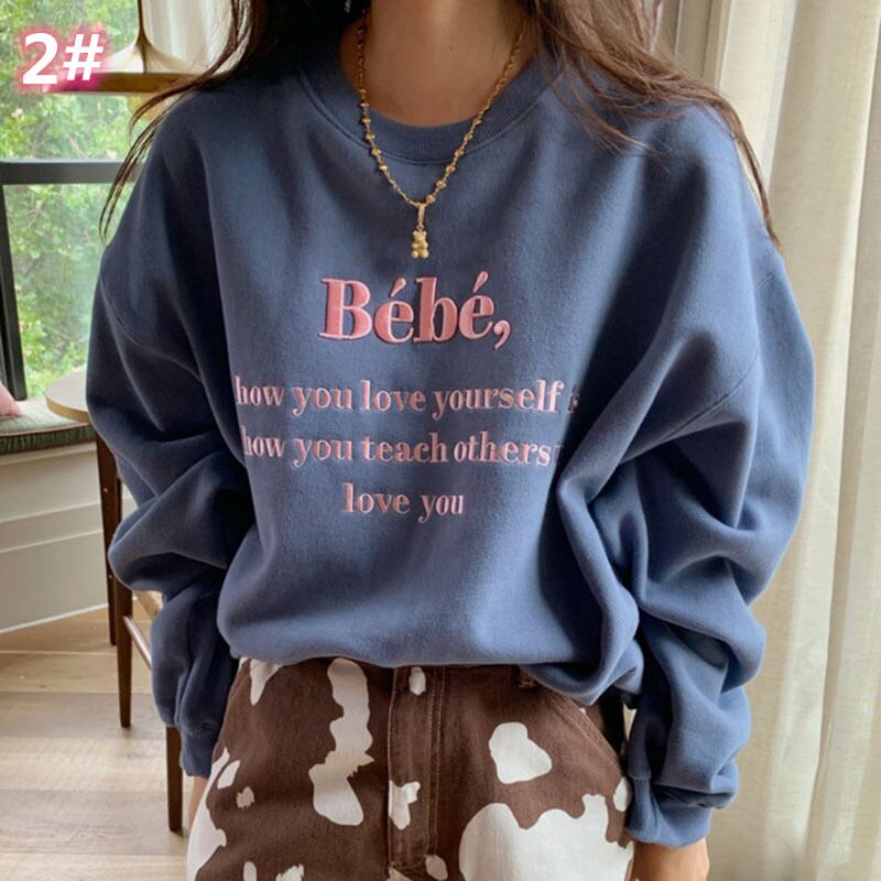 韓国風 プルオーバー ラウンドネックトップス レディース 英字ロゴ 2024年秋冬新作