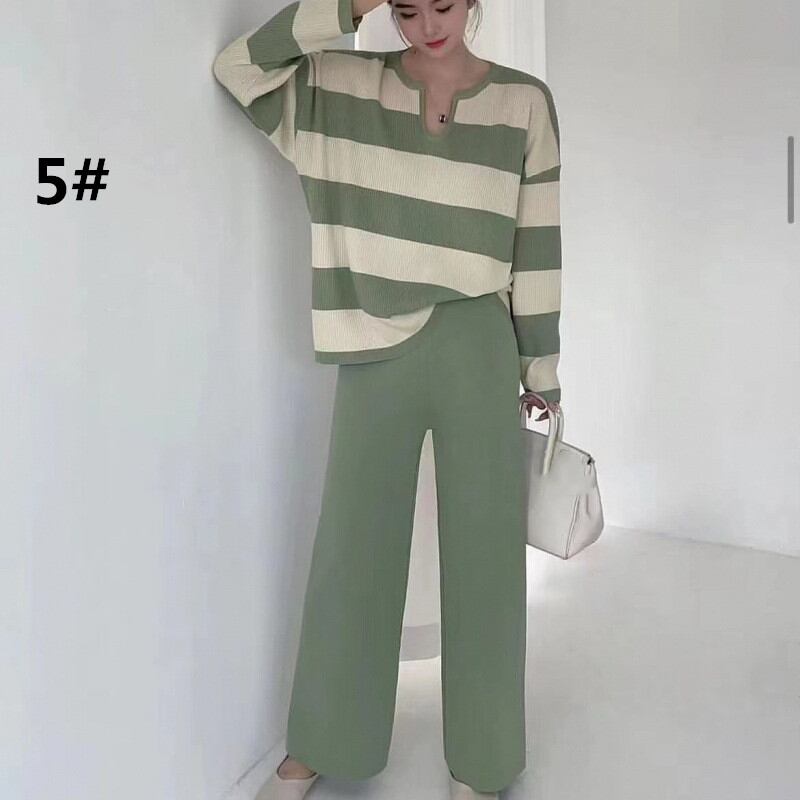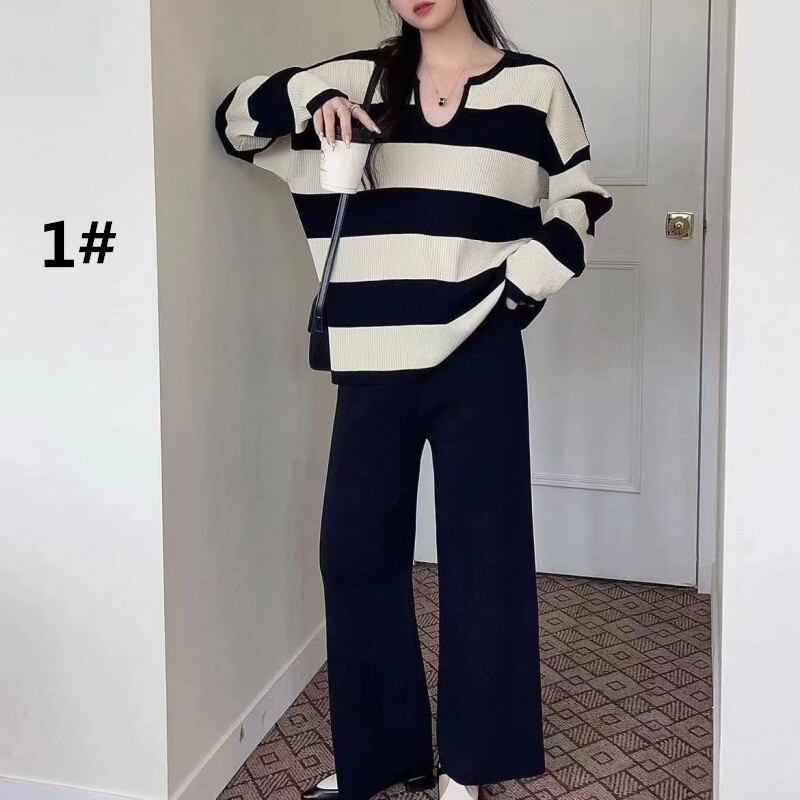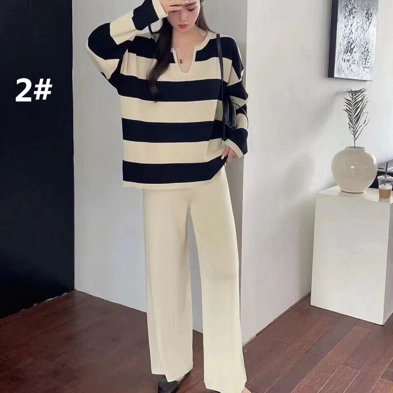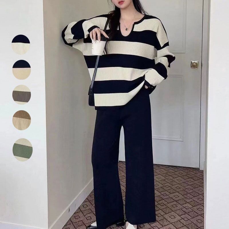 2024年秋冬新作 プルオーバー ニットトップス トップス Vネック レディース パンツ 上下セット